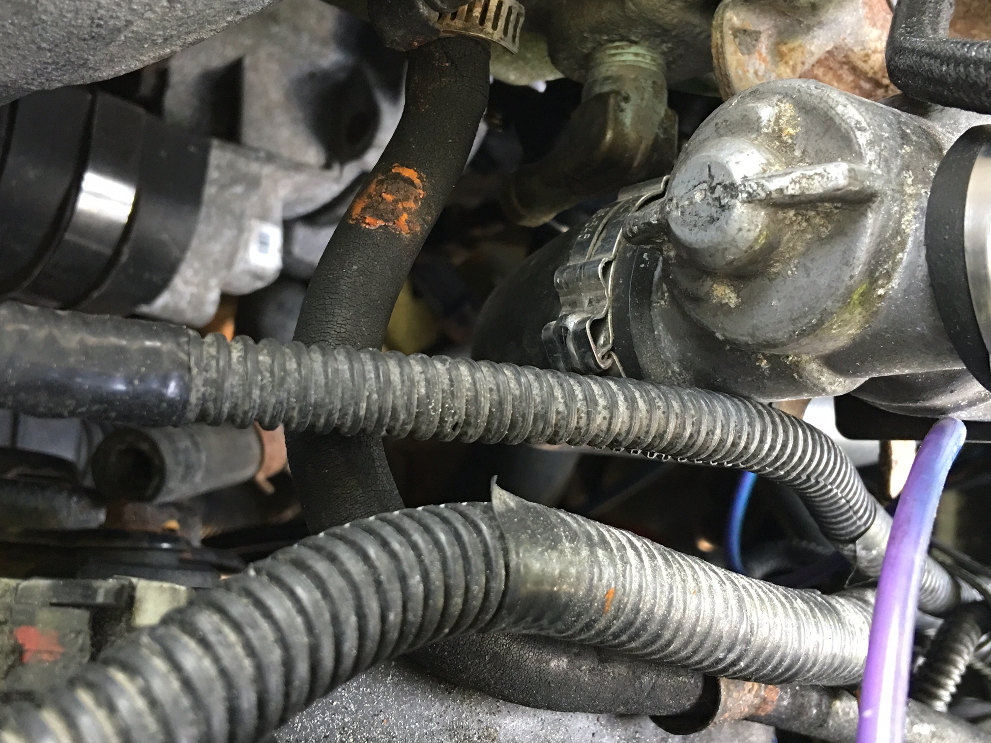 Two DTC's have arisen (no surprise, eh?!!). The first is P0117 - refers to the ECT (coolant temperature sensor) that sits just below the thermostat. I ran the car for about 5 minutes after clearing the codes, but the same two came back! The upper radiator hose is quite hot, the lower one cool. Am I not waiting long enough for the thermostat to open? The motor is not over heating; temp gauge is where it usually is just below the half way mark. The wiring from the harness to the ECT wiring connection is a bit frayed; there is not enough wire to install a butt connector, but I need to make this more solid somehow. The thermostat was new when I installed it last summer; I just don't recall where I purchased it. So, I am thinking the wiring issue needs to be taken care of initially, and then possibly a new (OE) thermostat. If I am missing or forgetting to check out another possible cause for the DTC P0117, please chime in! Appreciate all suggestions!!