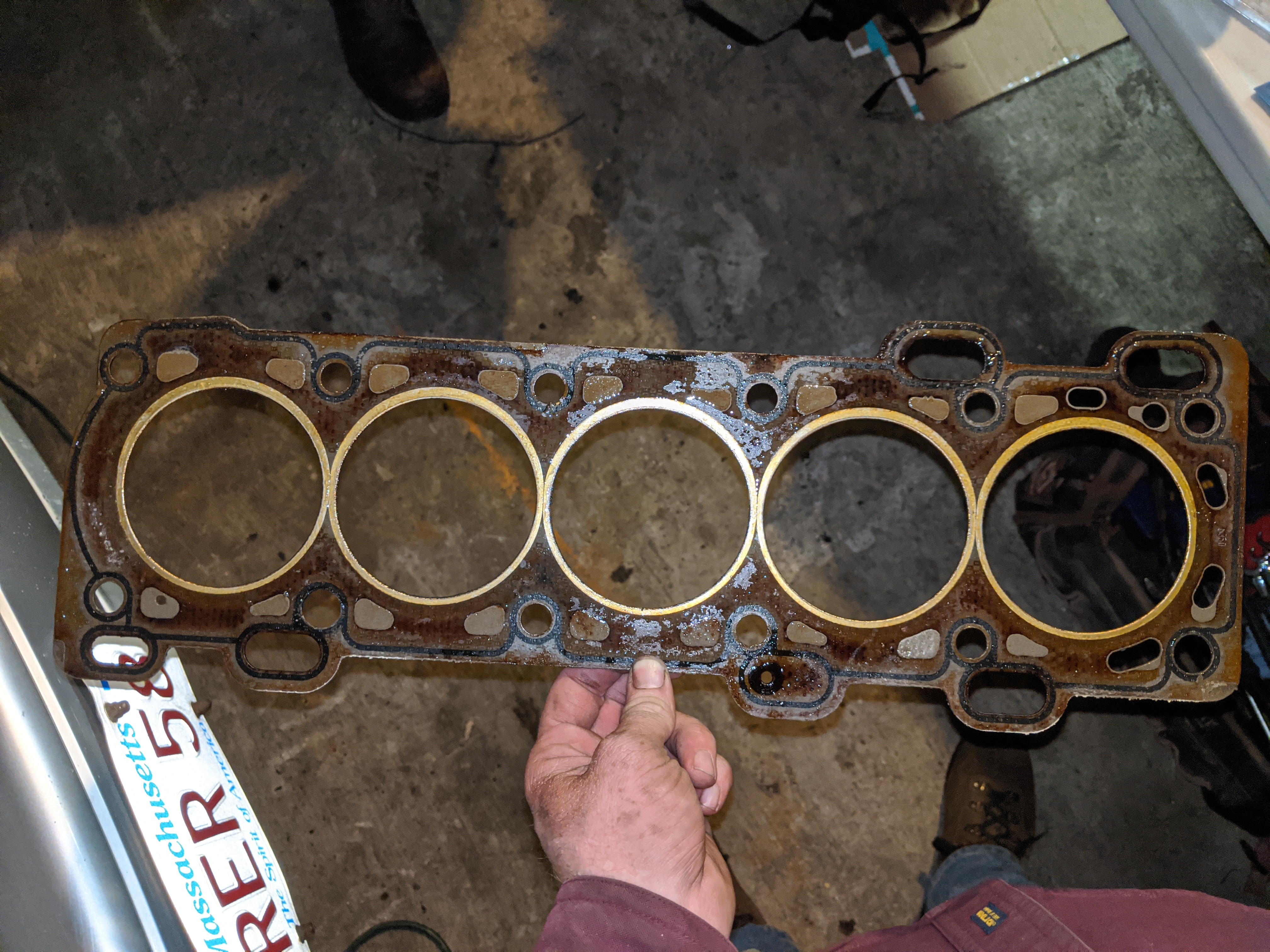 Got it all off, the head gasket doesn't have any super clear problems to my untrained eye.