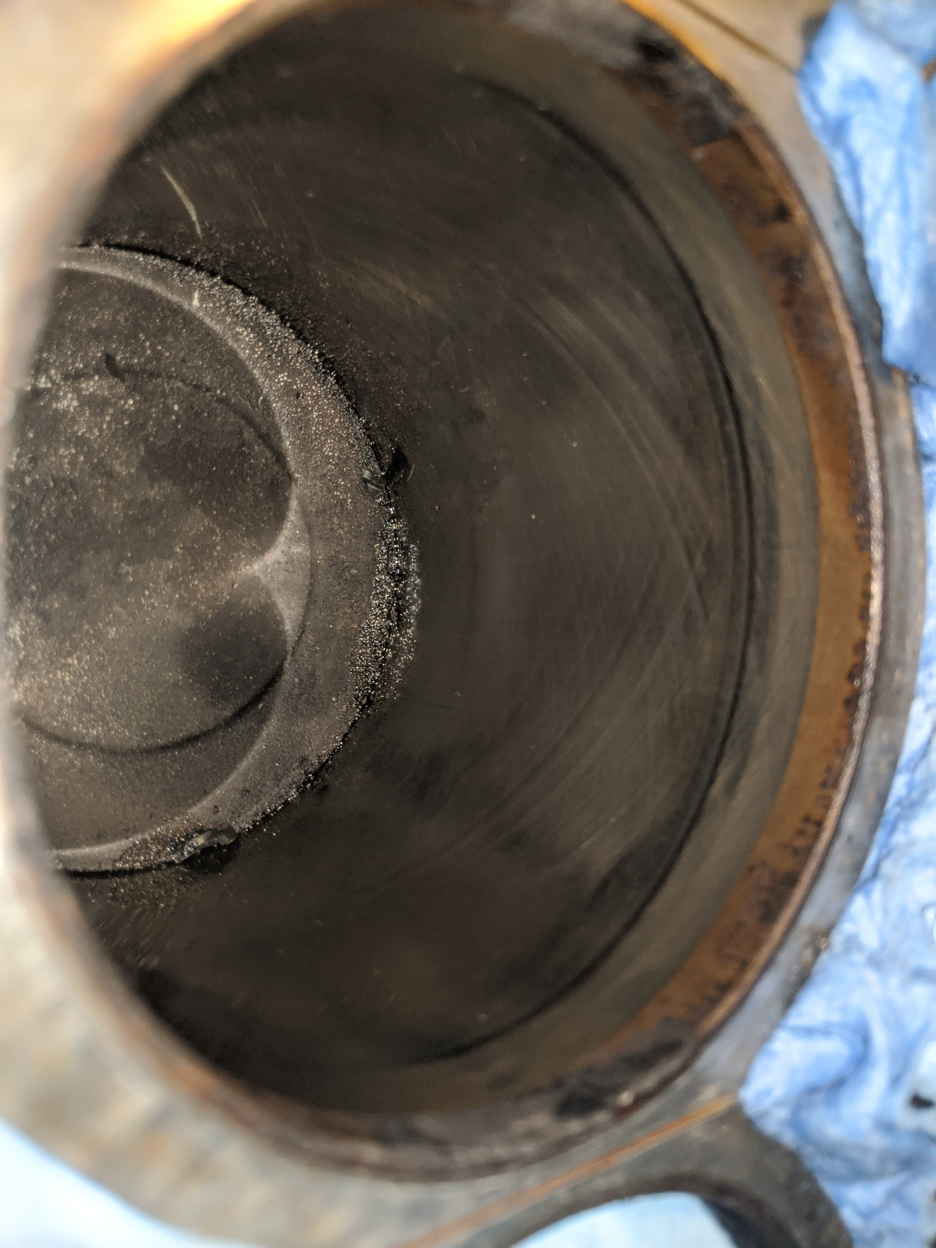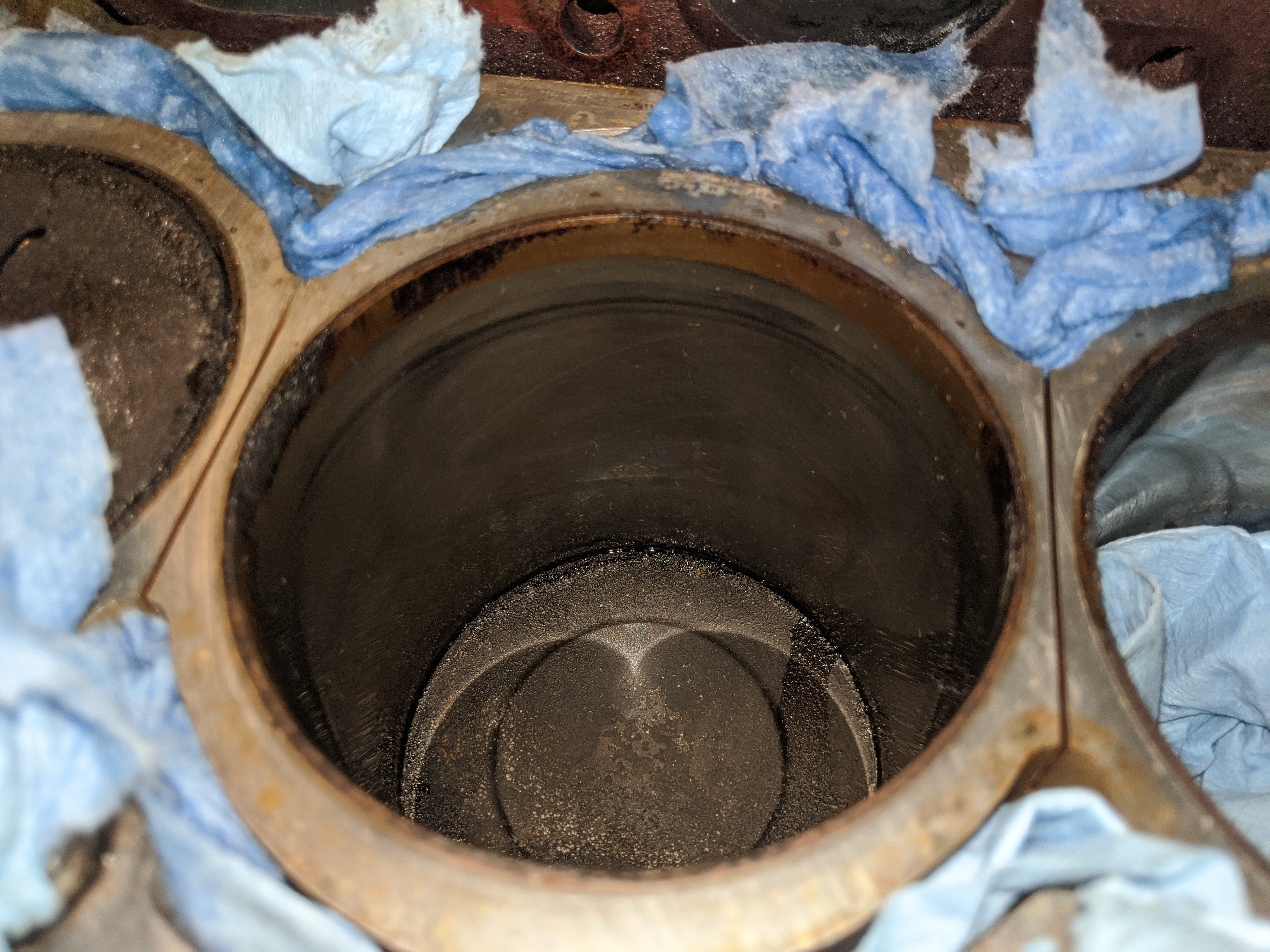 BlackBart wrote: 17 Dec 2019, 11:47 Yeah, they don't look bad really. You still have the diagonal hone marks in the cylinder. No, you don't want chunks or grit slipping down to the rings in the gap. You might take a narrow vacuum nozzle and suck any crud you can out of there. Interesting to see where the fuel has cleaned the area near where the valves open.