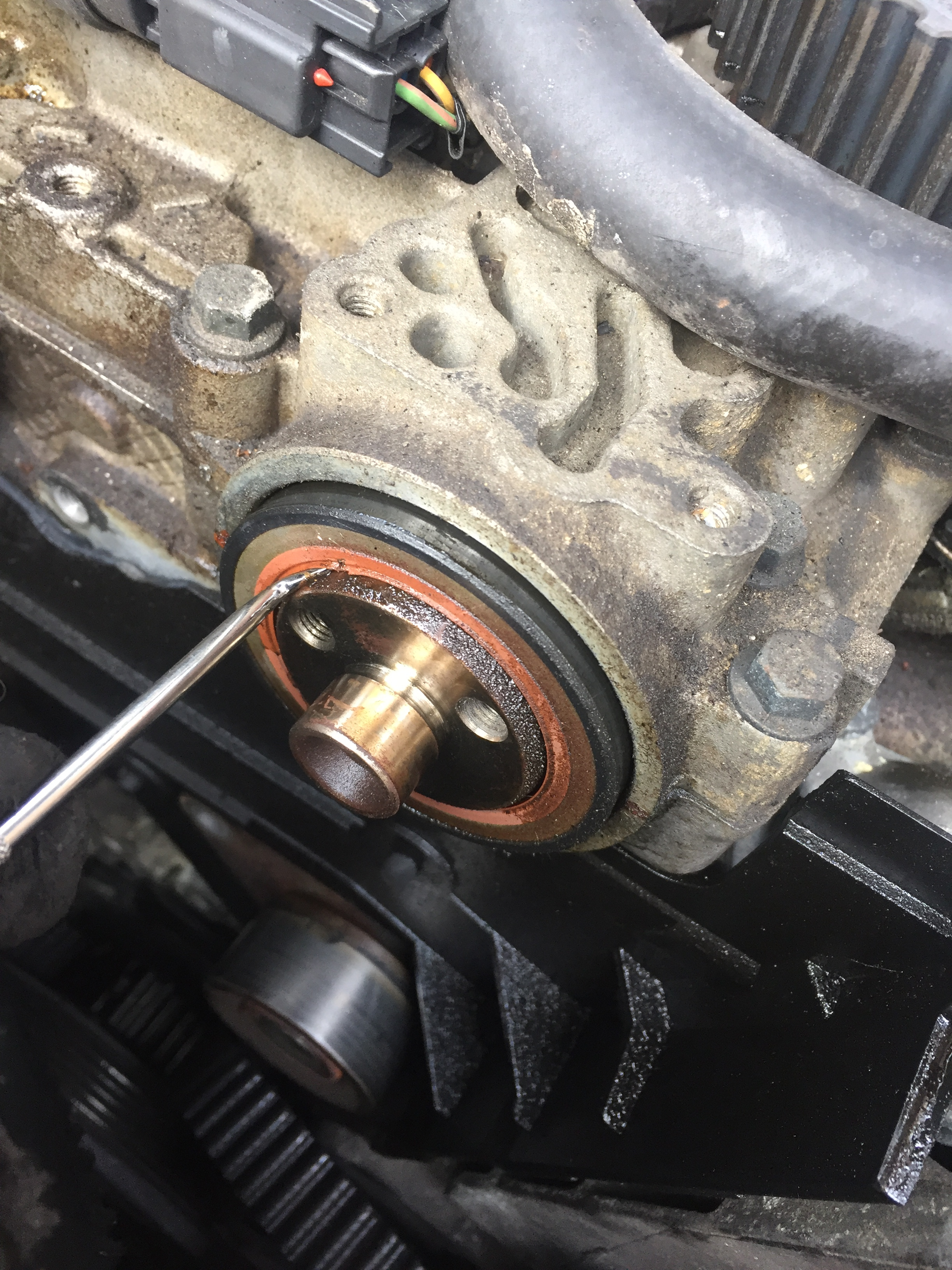 I wrenched on Elizabeth the 1999 T5 all day today. Got all the timing belt off four intake cam seal leaking slightly. By chance I had ordered a spare for Elvita as she has a slight seep too