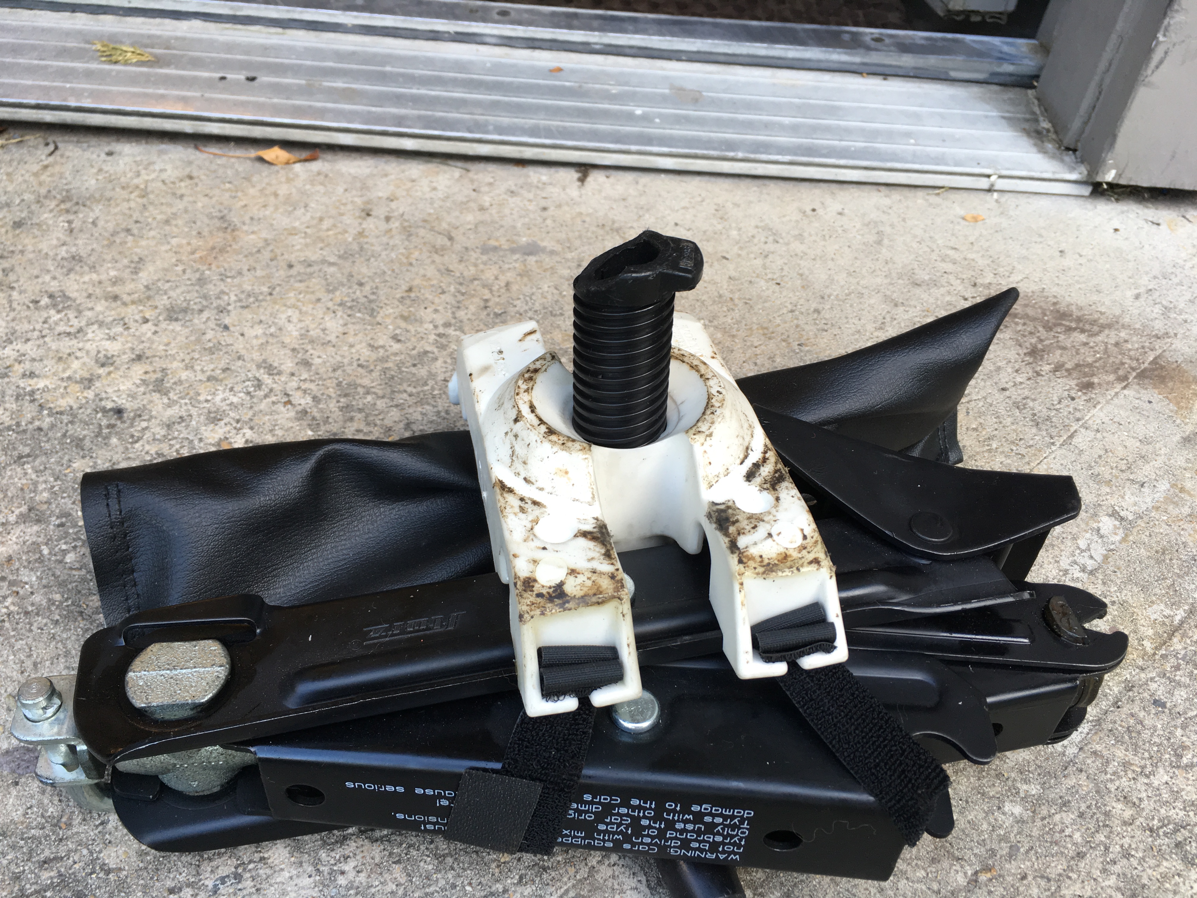 I've got the same jack holder but mine is whole. Keeps the spare wheel in place too. Works well and keeps everything tied down and silent.
