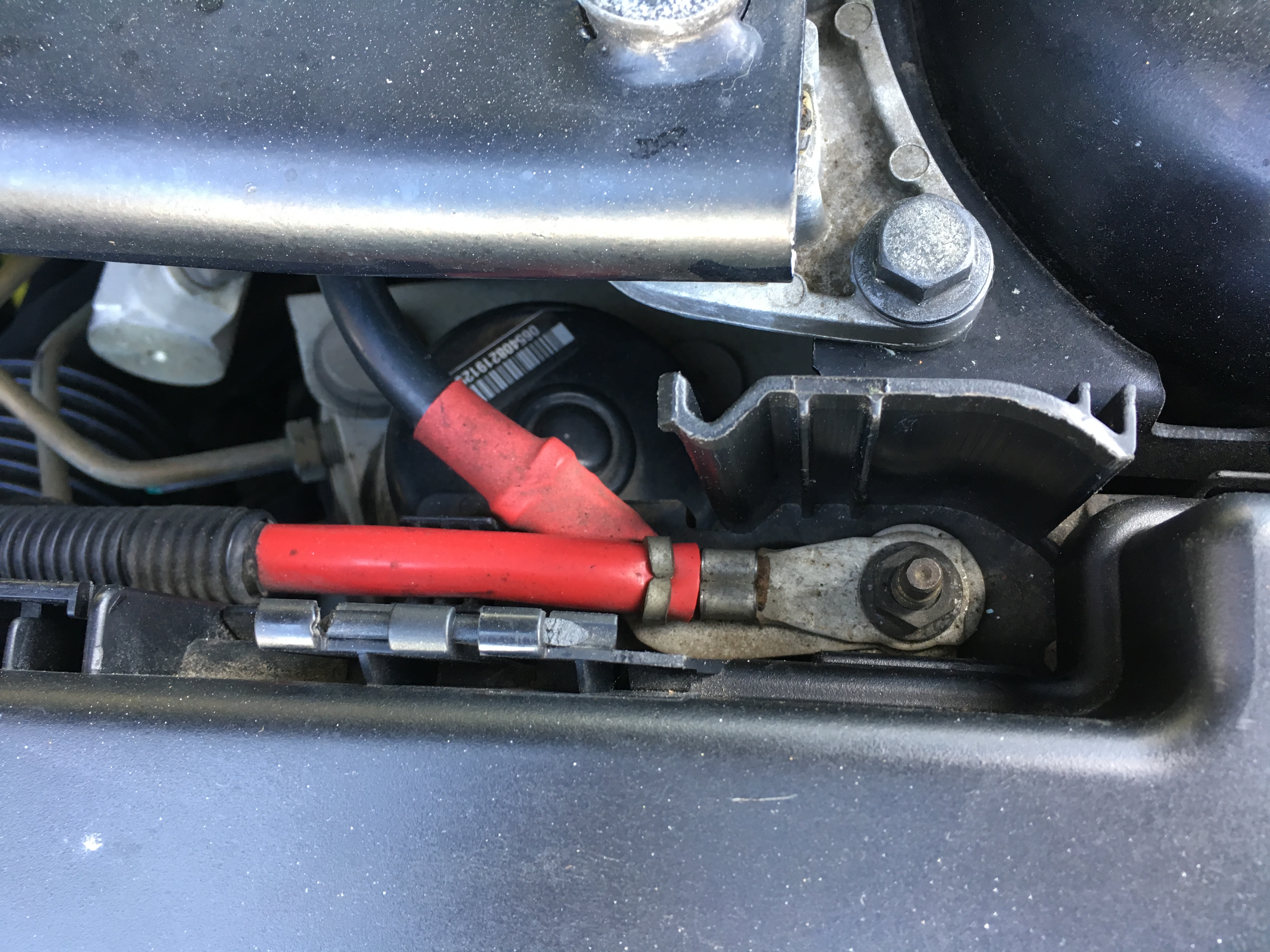 There must be a plastic cover over the hot power connection at the engine fuse box. There's a plastic hinge there.