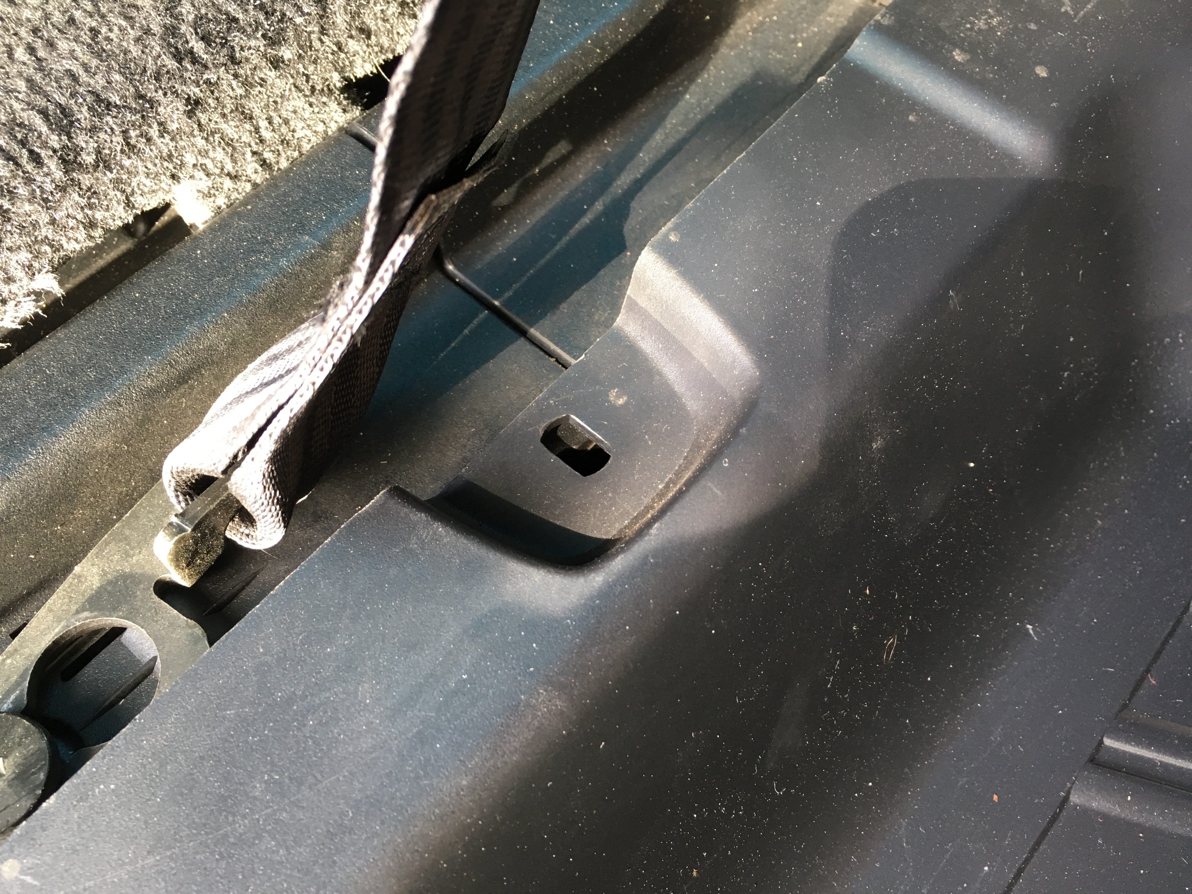 First off, trying to eliminate clunks and rattles. Does anyone have one of these big threaded plastic bolts that fit in the floor of the trunk? Maybe that's a salvage yard piece. What other ways are you holding down your jack? This one looks like it's never been out of the trunk.
