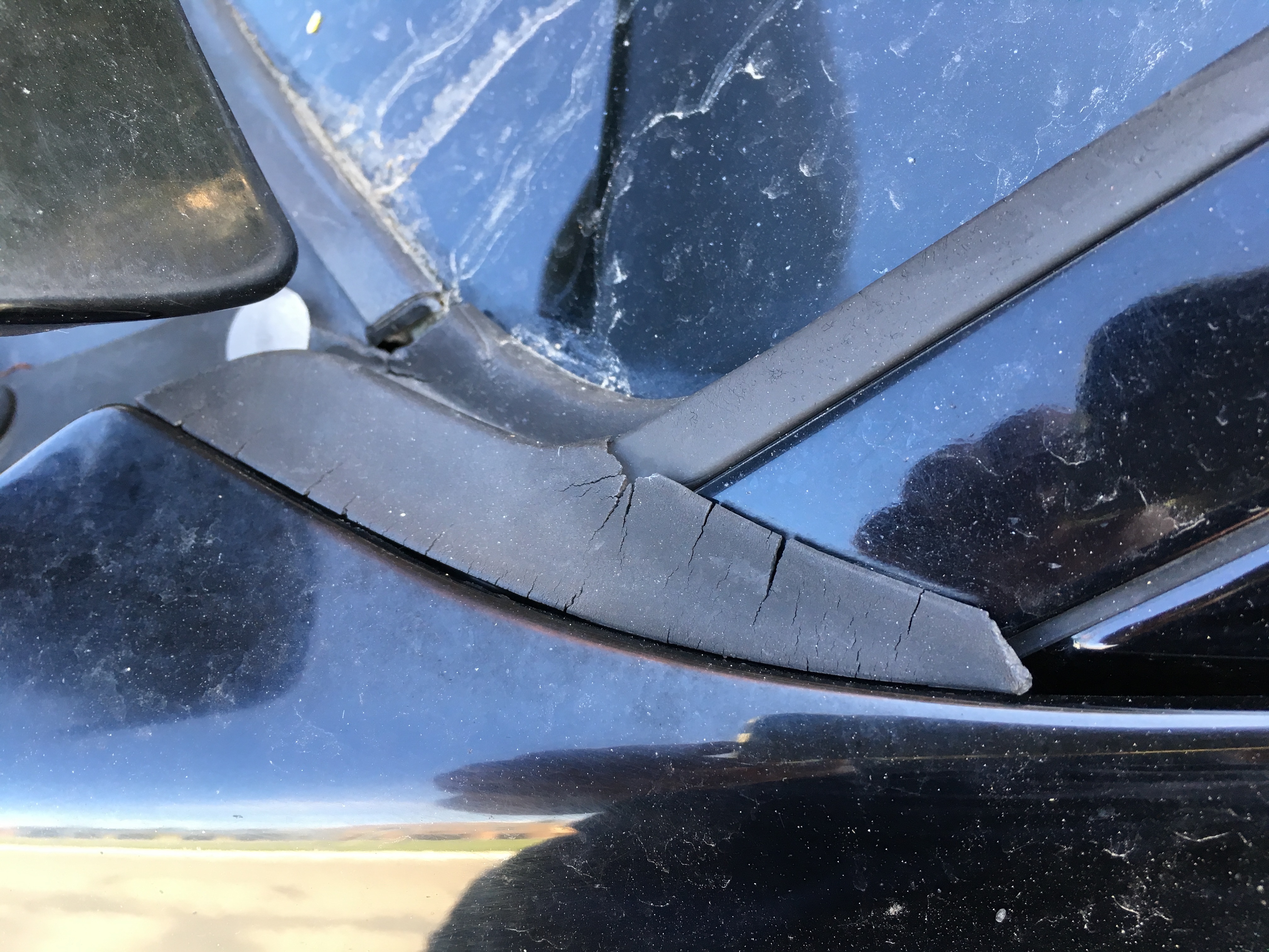 Sun-baked windshield trim...