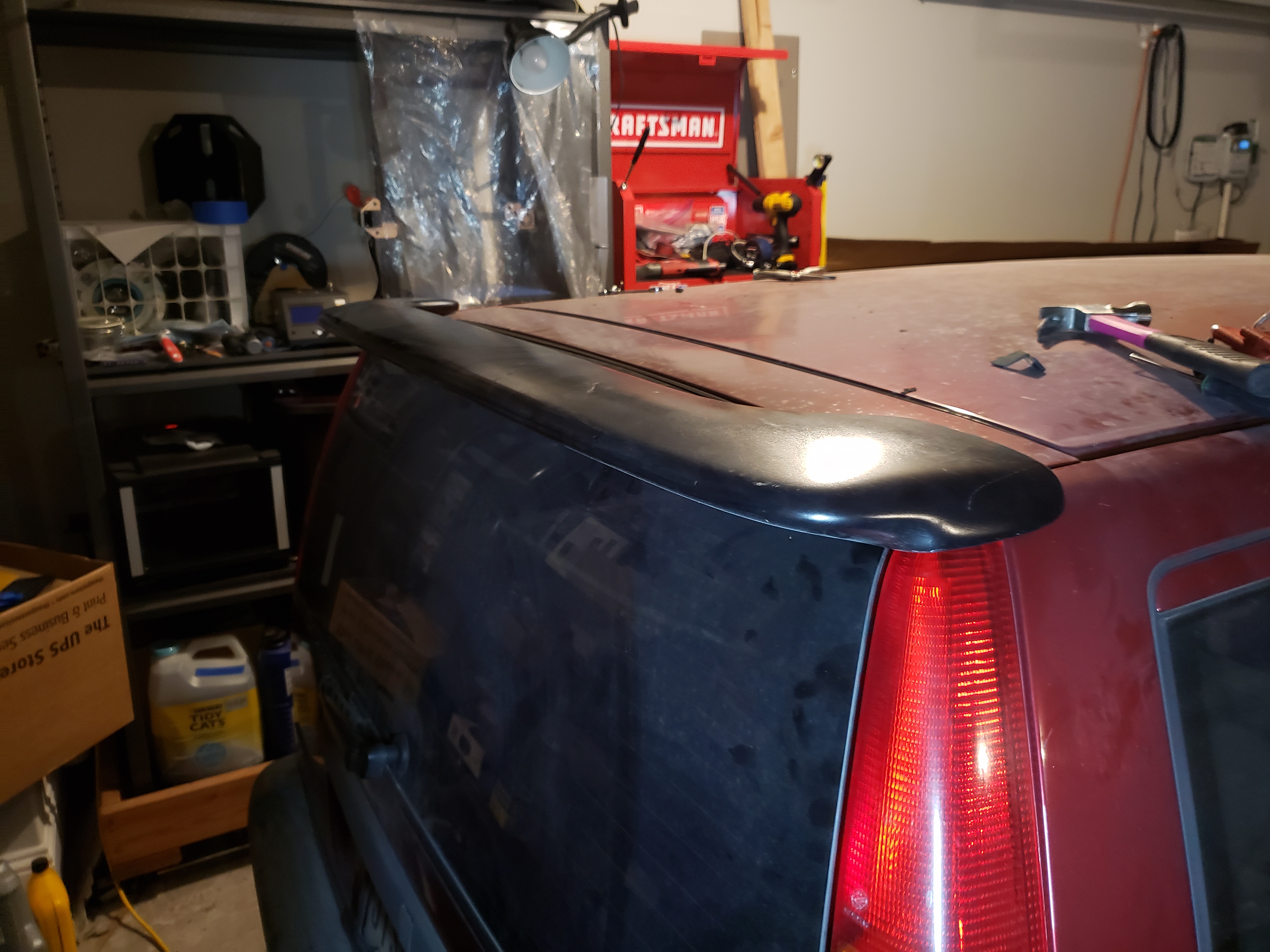 Purchased a rear wing for my wagon from Robert. It fits nicely. The 2 piece bracket design is a pain. Next I need to color match it.
