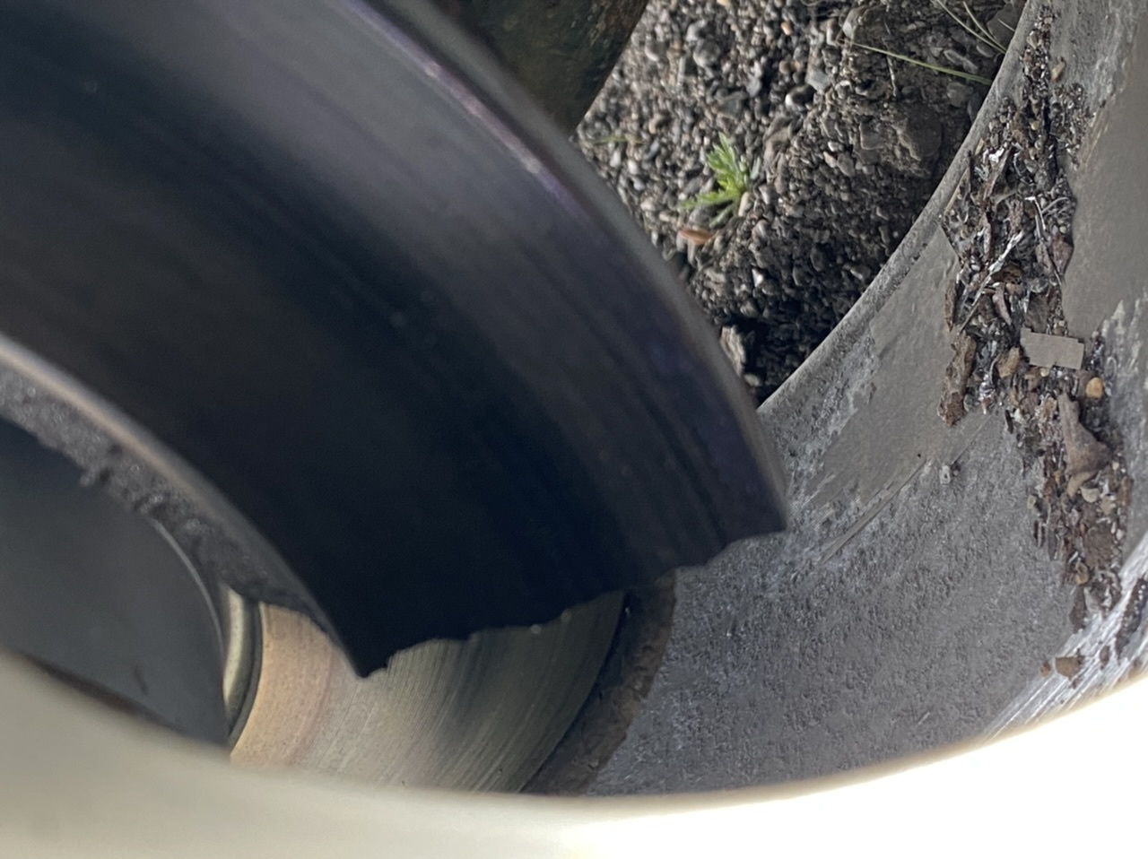 I’m guessing one of the calipers got loose, snagged the alloy, locked the wheel up at 75 mph, took out the brake rotor, alloy, tire, a piece of rotor flew over and took put the other tire.