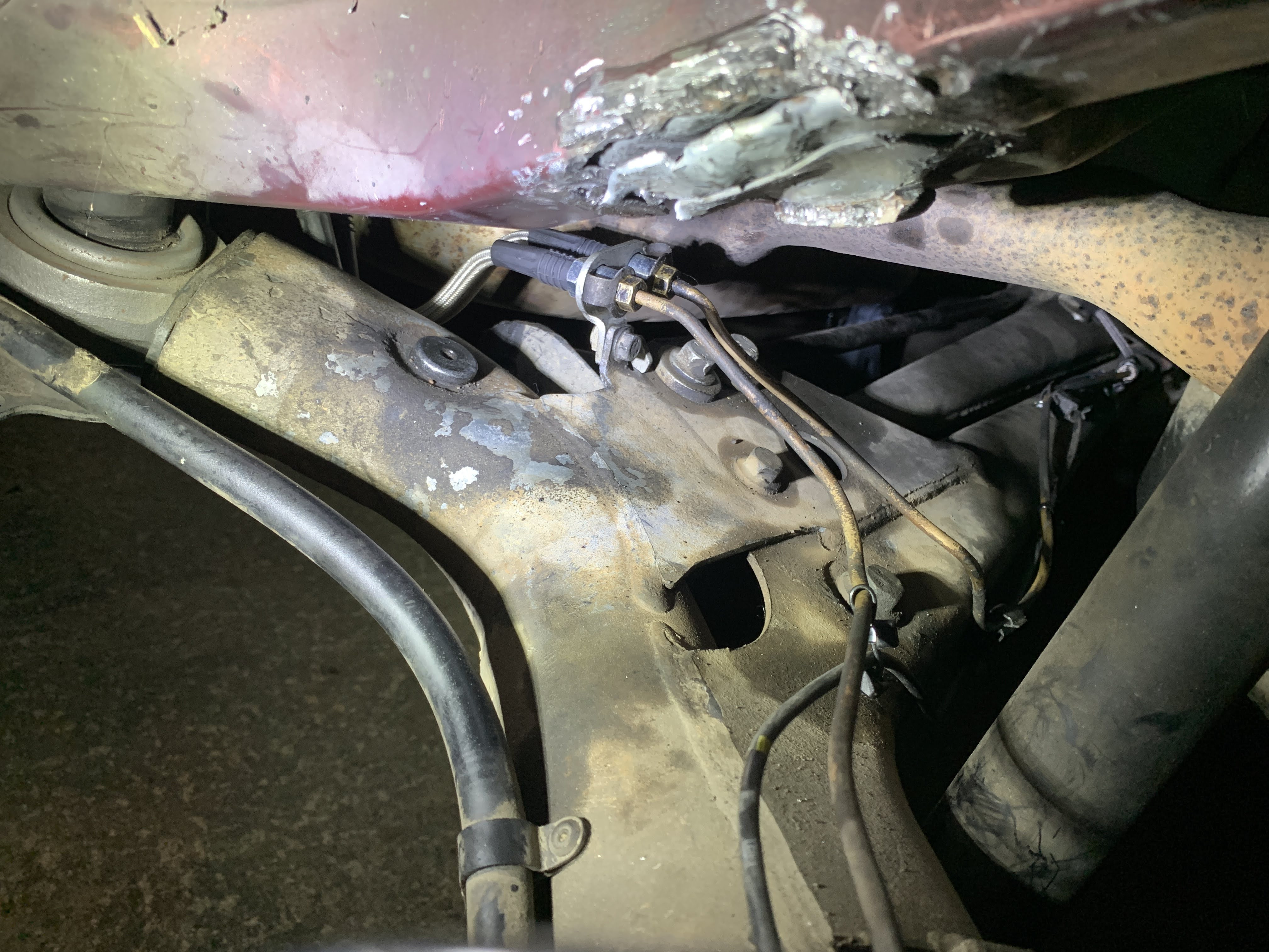 Finished chopping these AWD subframe brackets off so they don't smash my brake lines anymore. Believe it or not, I had no indication there was an issue beyond hearing a clunk on harder bumps. No issues with the brake pedal!