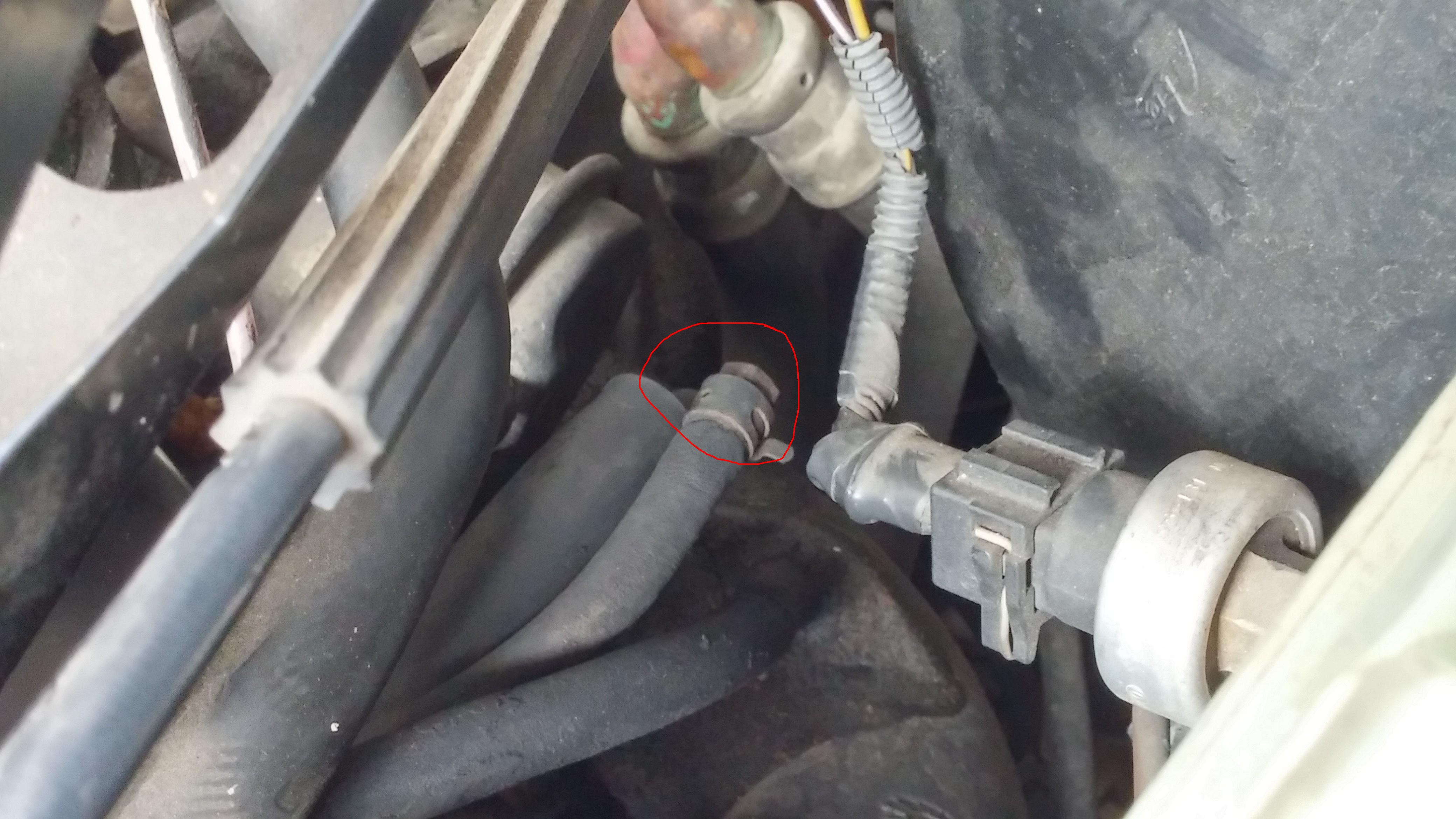 Well, another "What is this part" question. I can't find where it plugs in, and I seriously doubt this nail plugging it was there from the factory. Seems to me that it's part of the vacuum system, as it runs beside the line running to the intake hose from the purge valve.