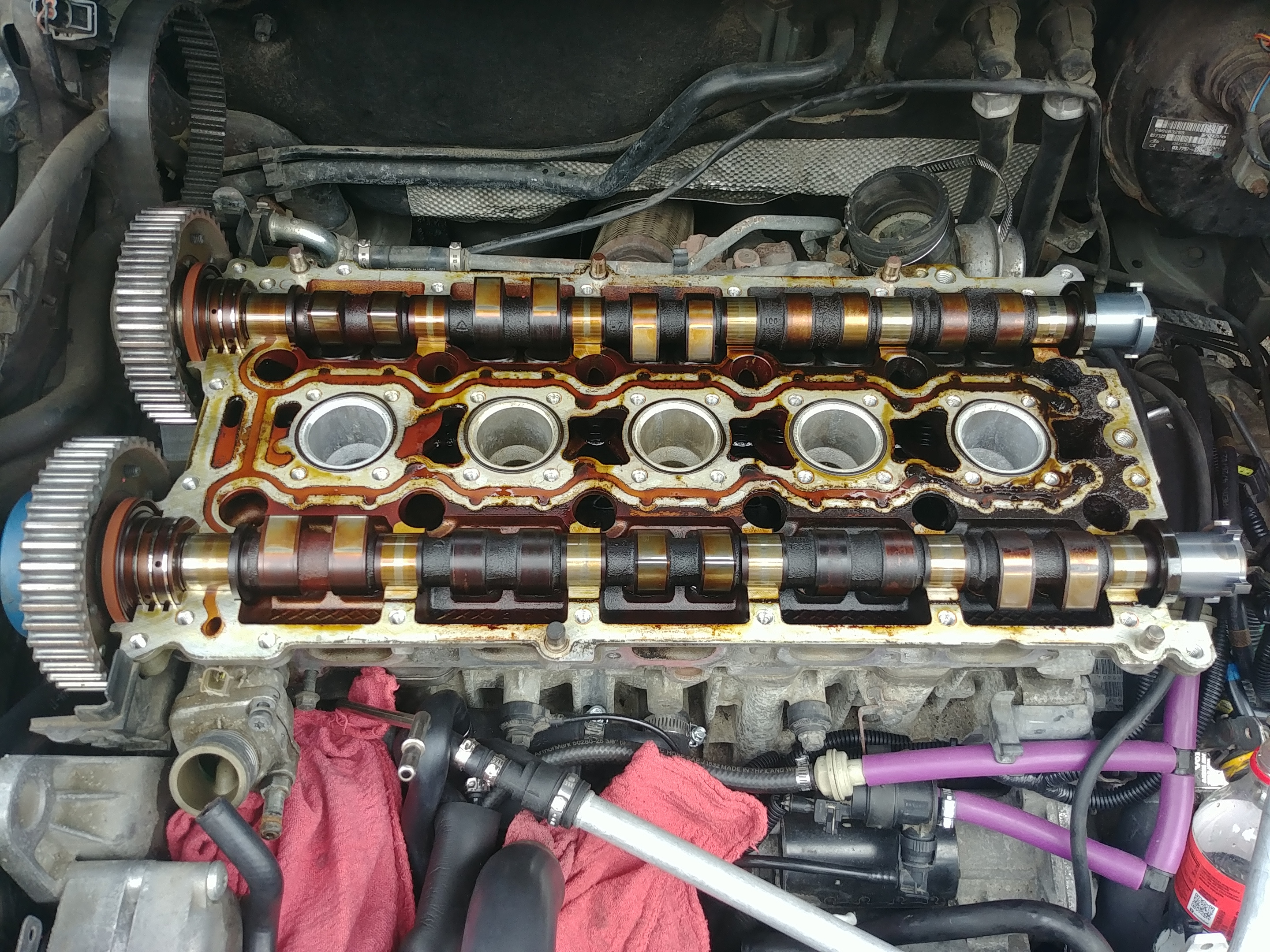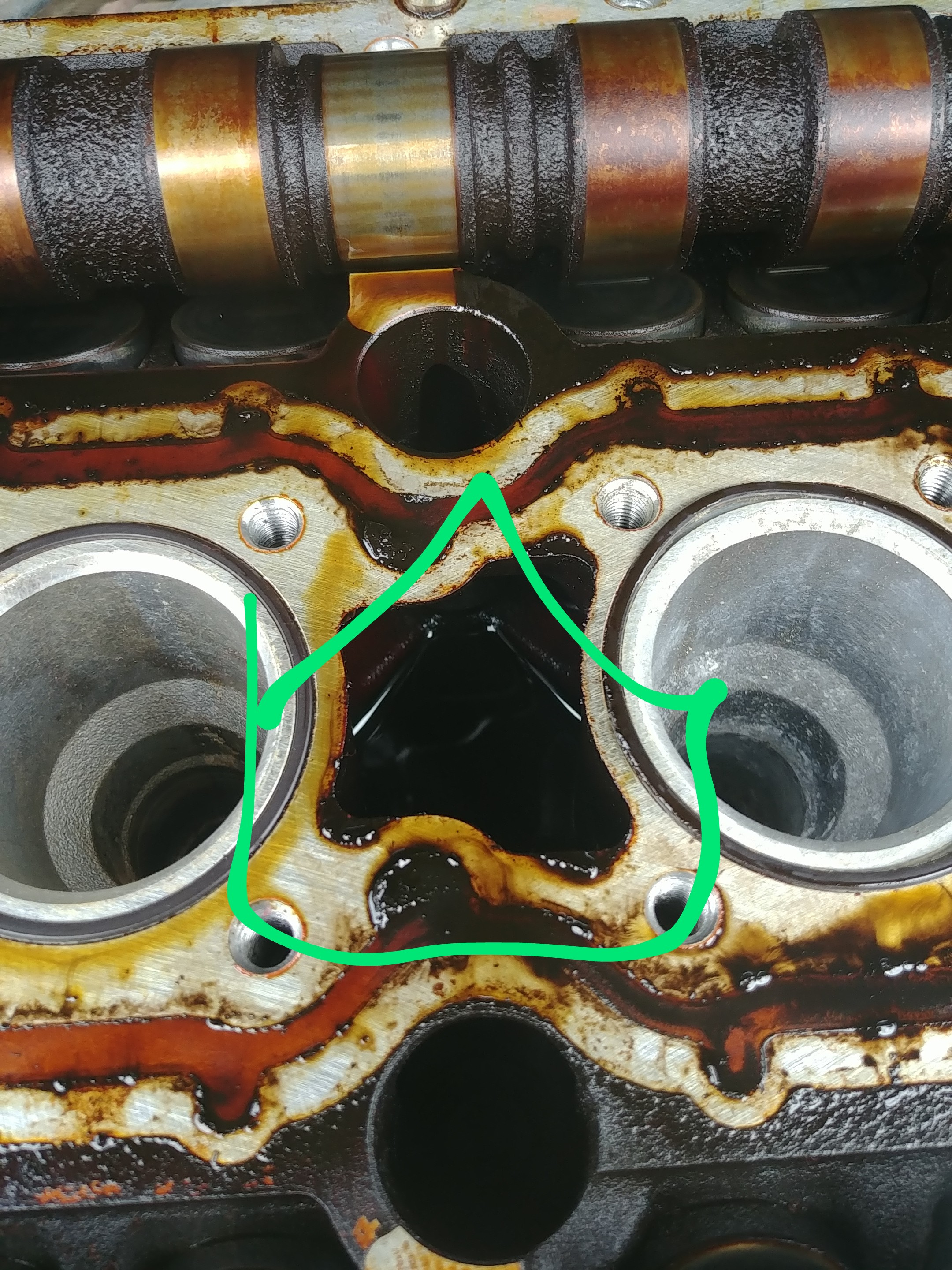 heavy oil tarnish on 2 and 4 intake cyl cam lobes.