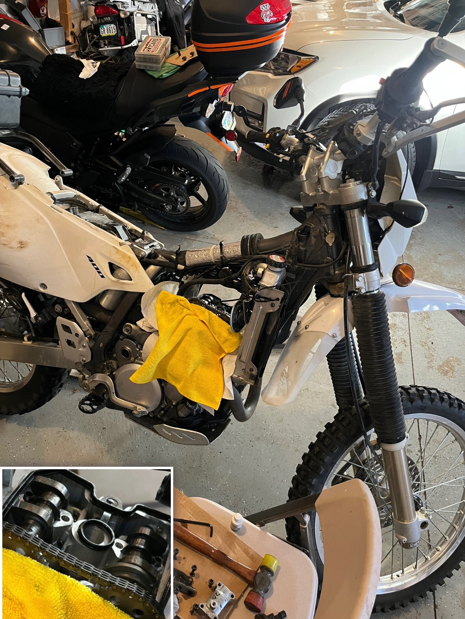 Valve check last month on my Suzuki DRZ400S. 19,000 miles on it and the intake and exhaust valves all checked tight so had to pull the camshafts to change out the shims under the buckets. A little bit intimidating but was slow and methodical and followed the service manual. Started and ran fine on first try. Most nerve racking was the valve check after torqueing it all down to make sure my shim changes got it all back in spec.
