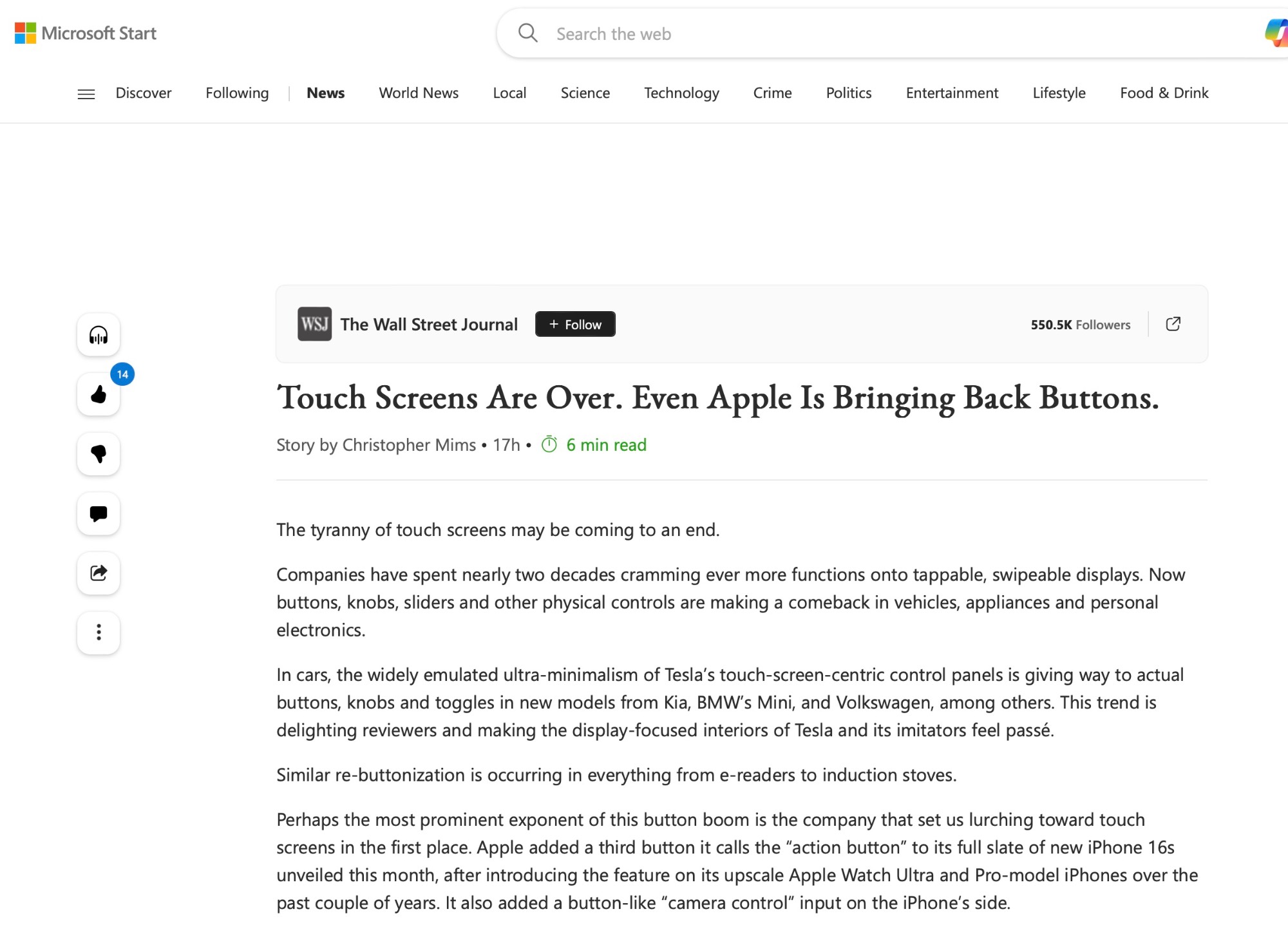 Touch Screens Are Over. Even Apple Is Bringing Back Buttons