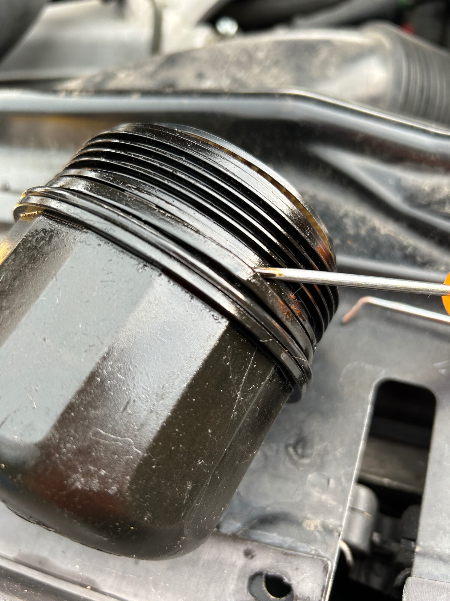 I put the new one on and noticed there is a rubber ring in a groove of the canister, but it’s not round, and not smashed down - it’s clearly a rectangular section shape so that it’s flat and smooth on the outside. I thought, huh, do they both go on there? (I am the oil changer, so it’s my fault if it’s missing)