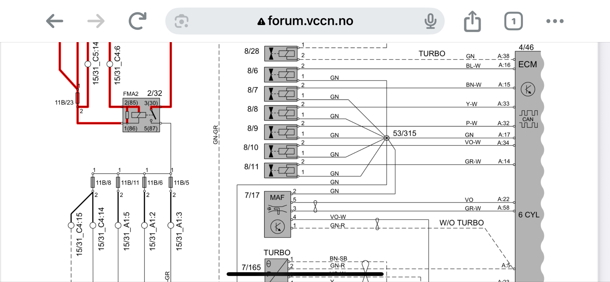My 2004 Volvo S80 T6 2.9, Im replacing the fuel injectors wiring harness and cut all the green wire without labeling to what injector they served. The color wire w/white stripes I did label. Since all the green wire in the wiring diagram shows they all tie together before connecting to the PCM terminal does it matter which one I connect to each fuel injector?