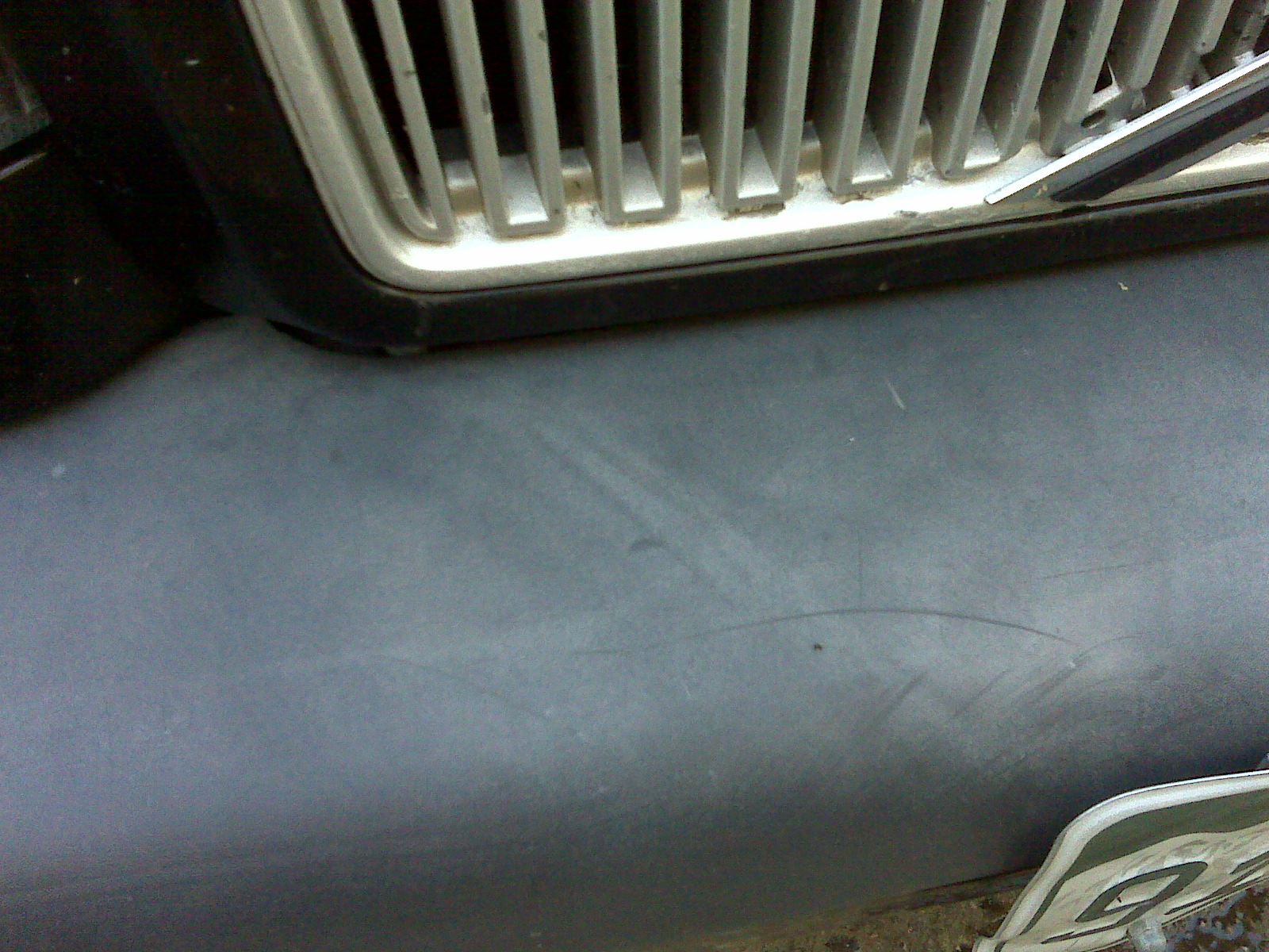 I learned a trick the other day for restoring our faded grey bumpers. Using a heat gun will bring the dark grey back to the surface. According to what I've read, this will last ages longer than any other restoratives (Mother's Back to Black, dyes, etc.). I don't have long term results, but here's a picture of my front bumper with just the fender side done: