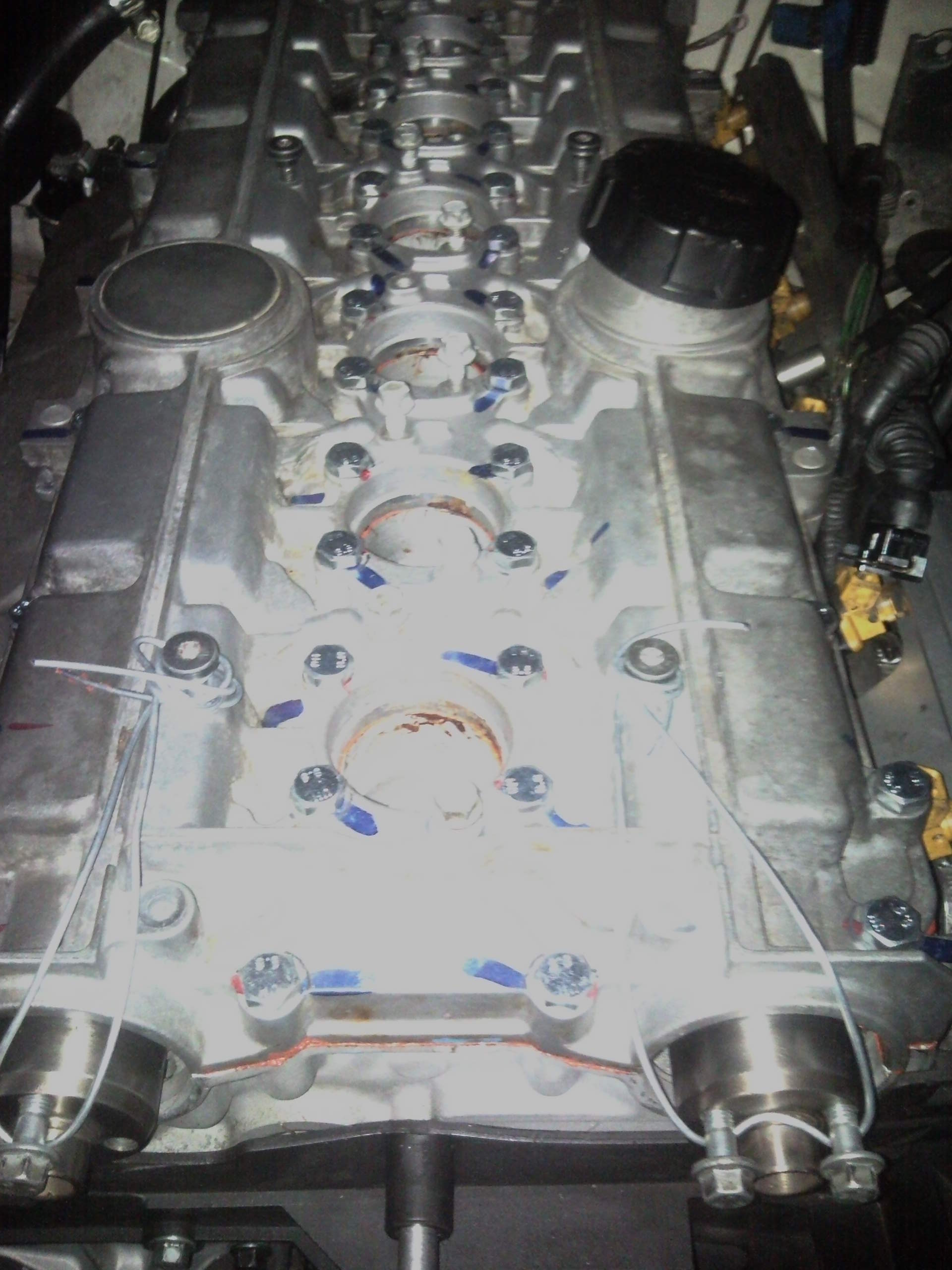 Then assemble the head top, taking great care to be extra clean for the mating surfaces, use a fast drying solvent to do a final wipe down, use the Volvo brand sealant/glue, it does not have any time limits on when it starts to work, as other brands may only give you 20-30 minutes. One needs the time on reassembly. I need that time.