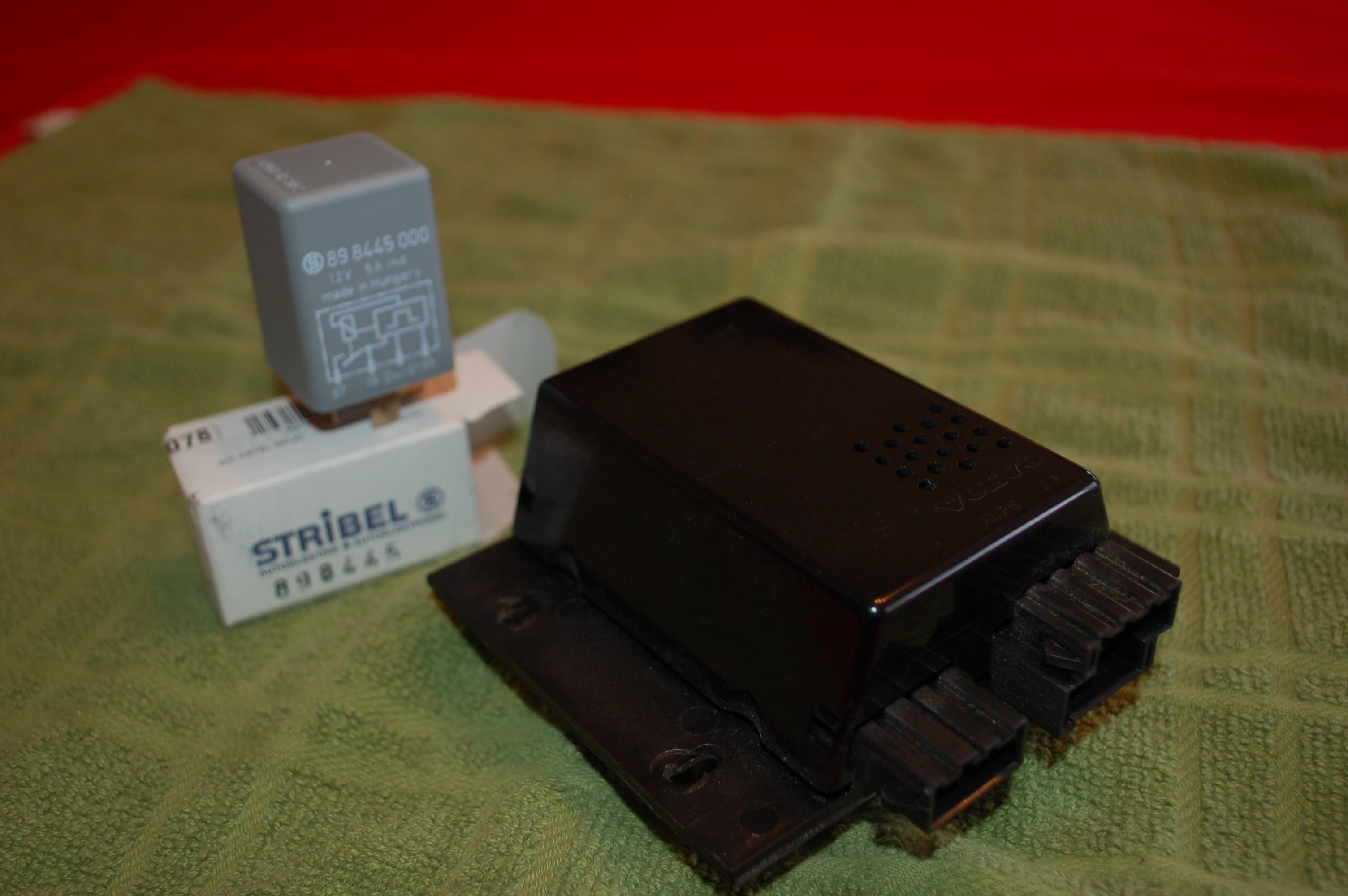 My A/C and blower fan completely fails to work sporatically for days, but then works fine for days at a time. I bought a Grey Stribel A/C Relay ( see photo) from an online source, but cannot find it in my normal relay panel ( see photo ) behind shifter on passenger's side. Is this relay incorrect for my car ? Or if it is correct, where is it located ? When the problem occurs the illumination light surrounding the A/C Button continually blinks. While it is blinking I have completely unplugged the black control unit located behing glovebox ,above evaporator housing ( see photo )...and the blinking continues uninterrupted. I just installed a reconditioned A/C Control Head / Switch Panel which has not solved the problem. I am leaning toward the black control module. Can anyone support my conclusions ? Any sources for good used part ? Thanks for any feedback.