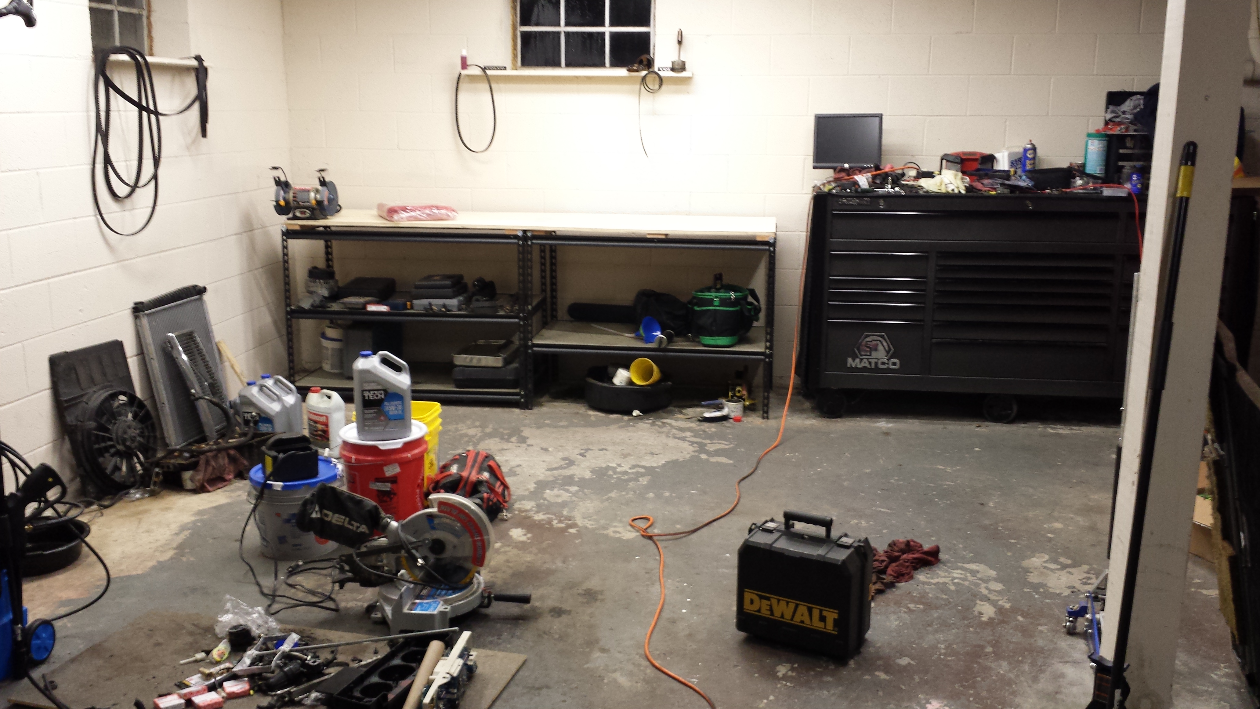Sometimes I use my dad's garage, but he's not in my 'hood, and when I go I must bring my ~100 lbs. of misc. parts and tools.