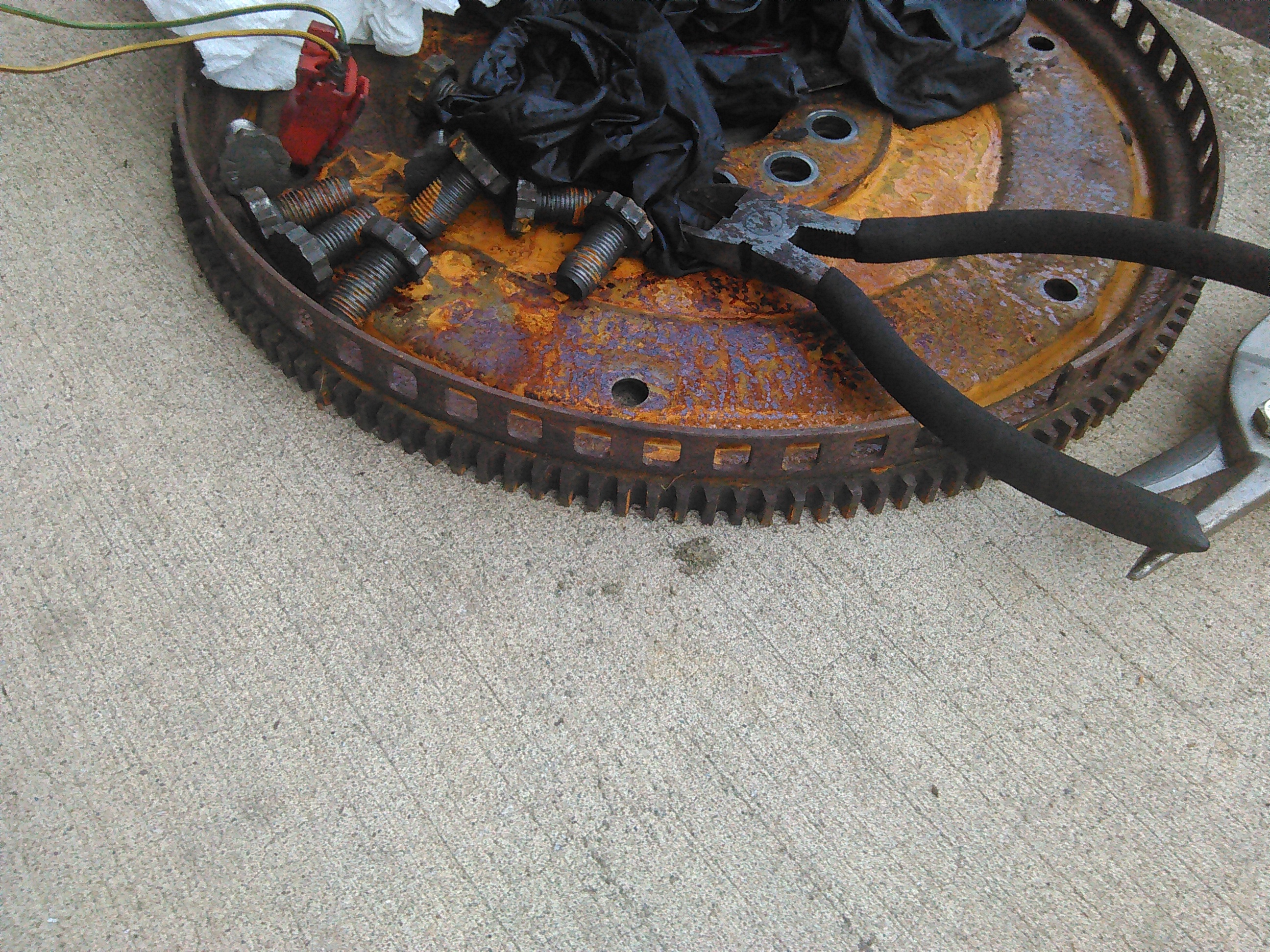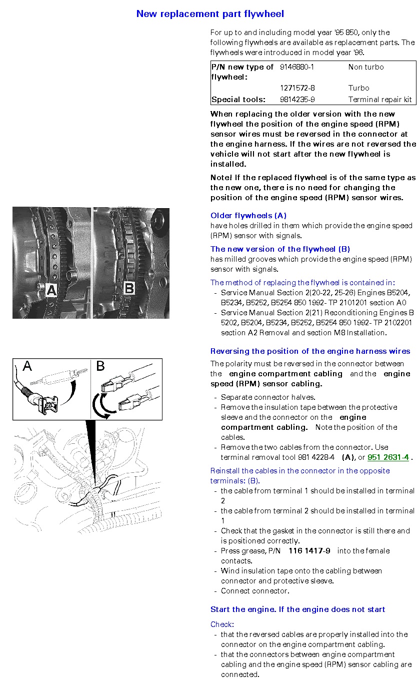This is a 95 and I believe the M56 transmission I got was off of a 94. The flywheel I got is presumably from the same car. As I understand it, using a 95 or earlier flywheel does not require reversing polarity on the crank sensor. So I didn't reverse it. From the diagram below it looks the flex plate off of the auto and flywheel from the manual both use the old style of holes for the crank sensor (flywheel 'A') so I'm pretty sure I don't need to mess with that wiring.