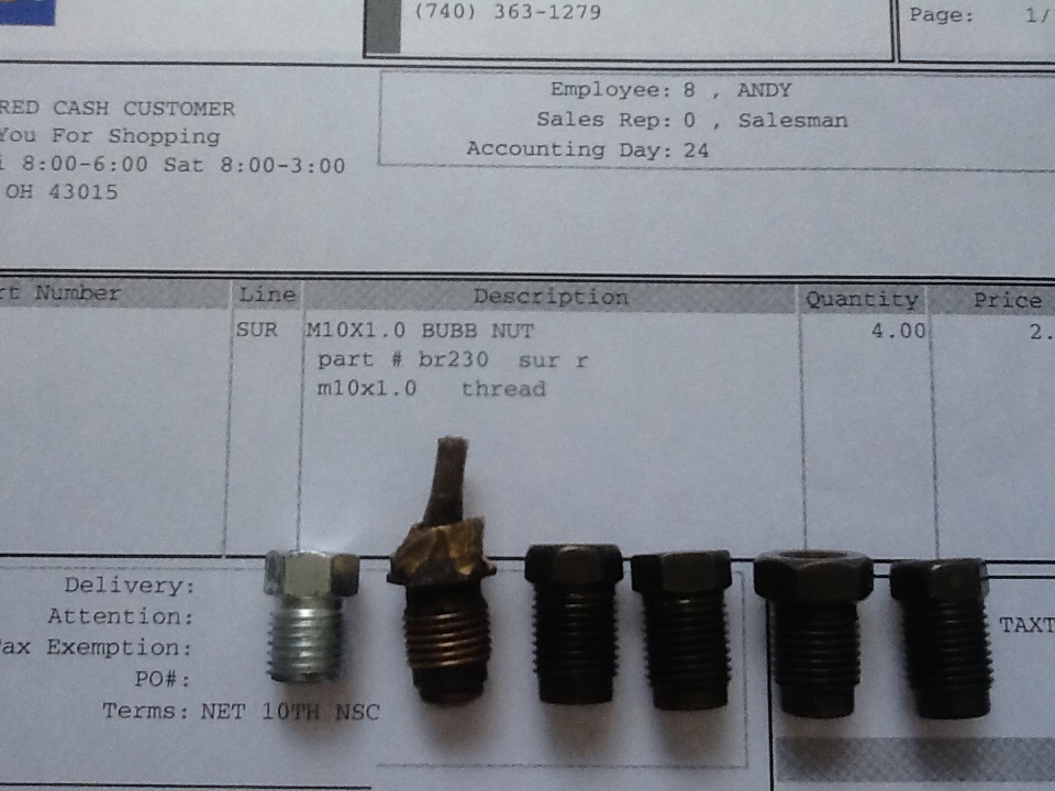 Does anyone know either the part number or perhaps a website that would sell the copper end fitting that attaches the right front pass. side brake pipe line to the brake hose?
