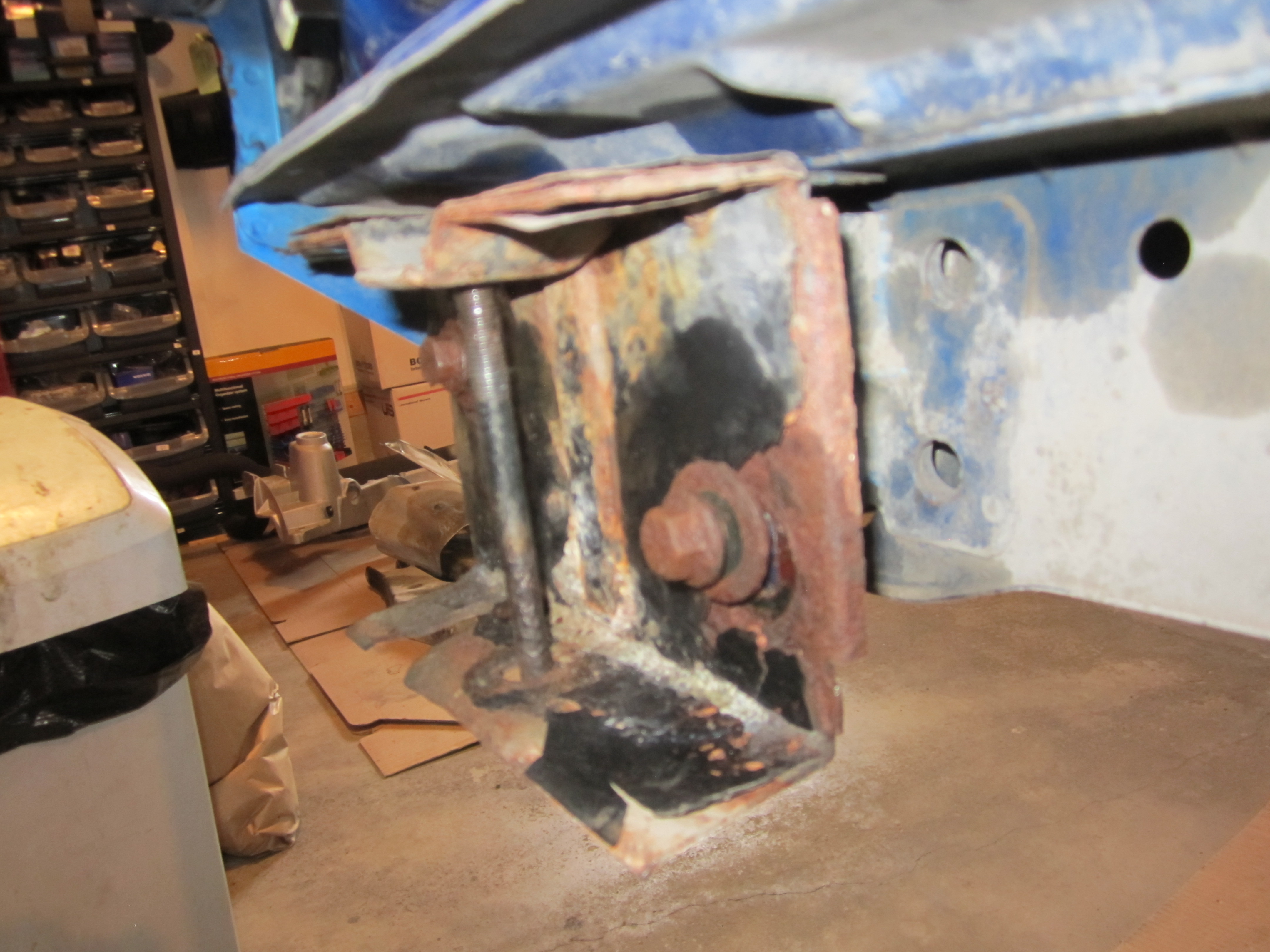 I decided, that it was time to look at removing the rear bumper to fit the powder coated bumper mounts. I am aware the bolts can rust, but thought I was lucky as the first one came out relatively easily, so I removed it, cleaned the rust of it (it showed signs of heavy pitting near the bolt head), put anti-seize on it and replaced it for now. RH side does not have the same access to get in with Deep Creep. I did get some in there and let it sit. When I tried to remove it, the head immediately snapped off with about 1/2" of the shaft. This of course means you cannot now remove the bumper as Volvo have fully enclosed the bolt. so no access to somehow remove the rest of the broken bolt.