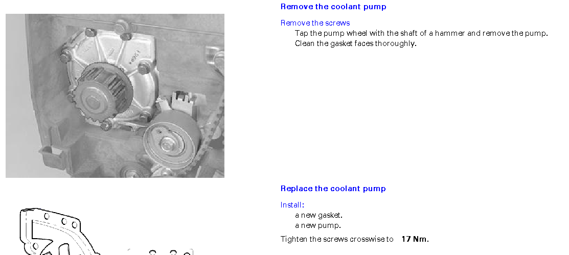 The book says to tap the pump wheel to remove the pump. Install new gasket and tighten to 17 nm. Maybe a well placed whack with a rubber hammer would do it.
