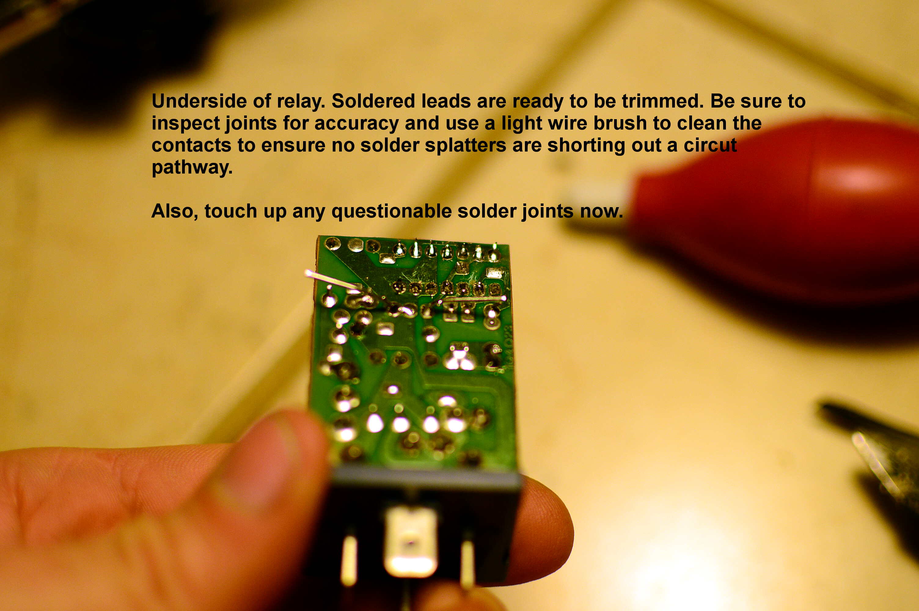 So, the next thing I did was to take the relay apart, and check the connections to see if any of the soldered joints were cracked or oxidized. They were. I repaired those, but again,no click.