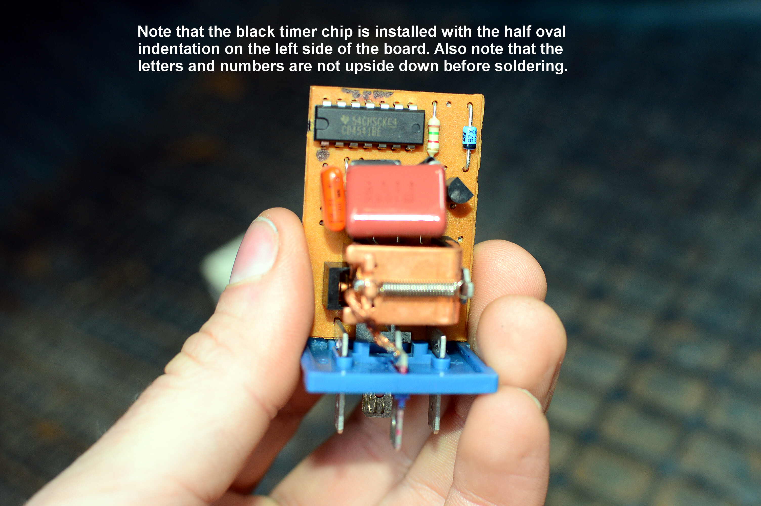 My defroster was not working. I did not hear a click from the relay when pressing the defrost button, so instead of paying $45.00 plus shipping for a new relay, I ordered two parts that I suspected were at fault. These were the radial 1 uf 65 Volt capacitor (blue) and the IC Timer (black rectangular chip).