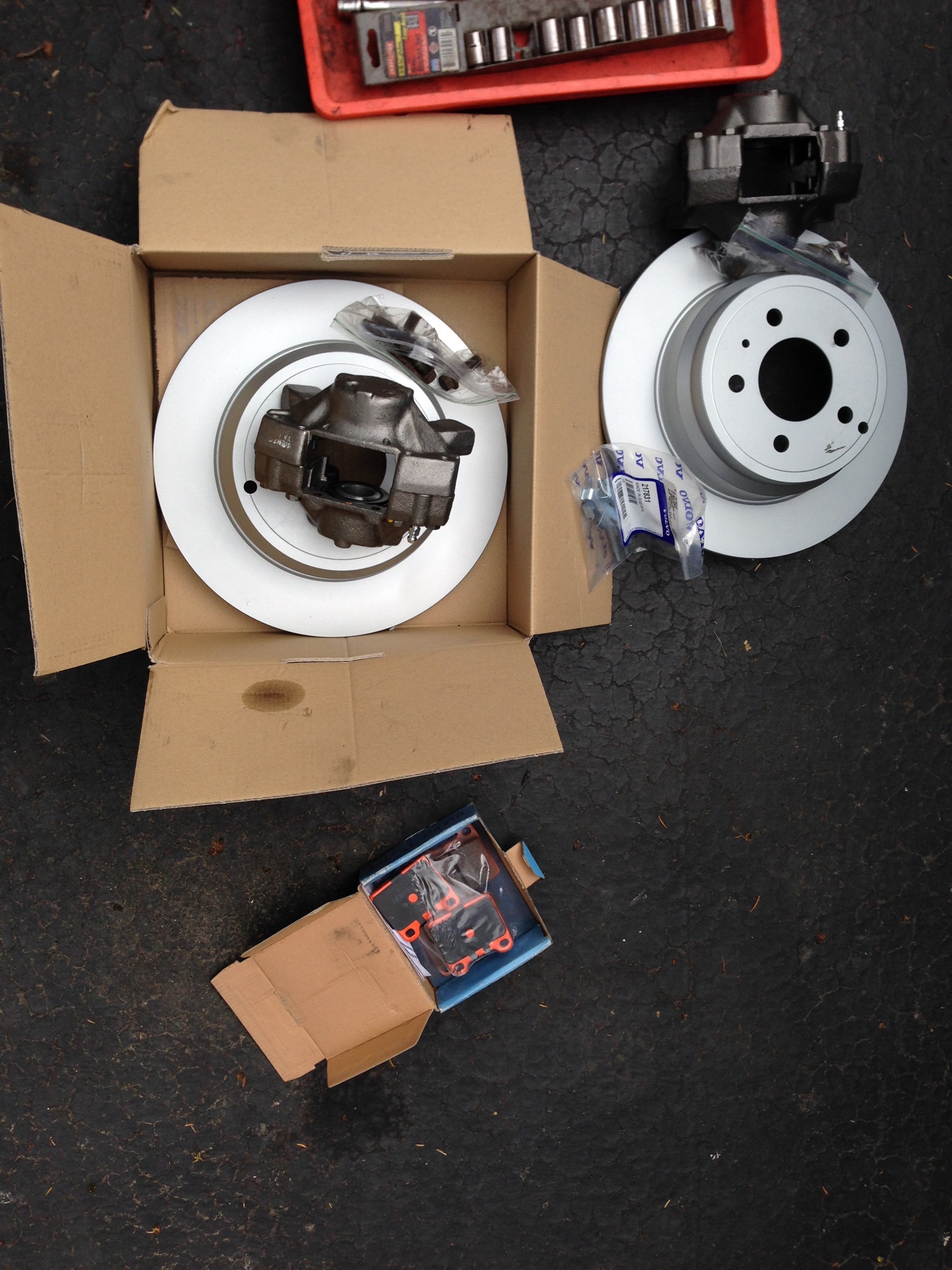 Had pads in my parts locker, and bought OEM Volvo pins and spring hardware