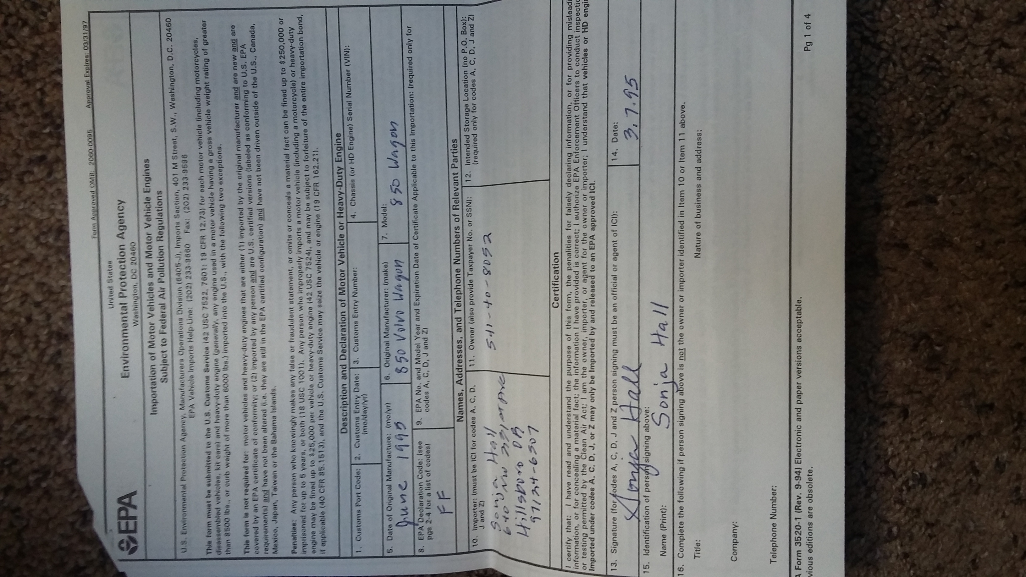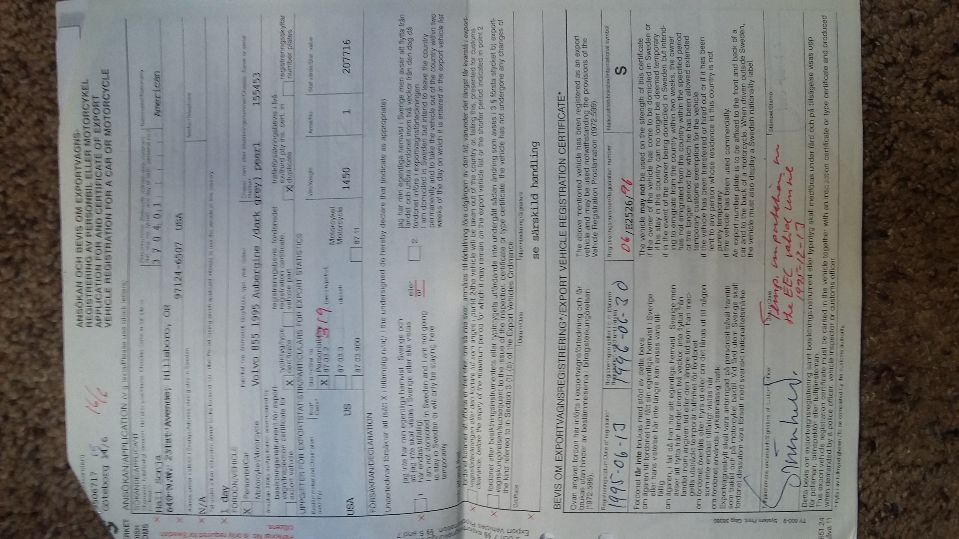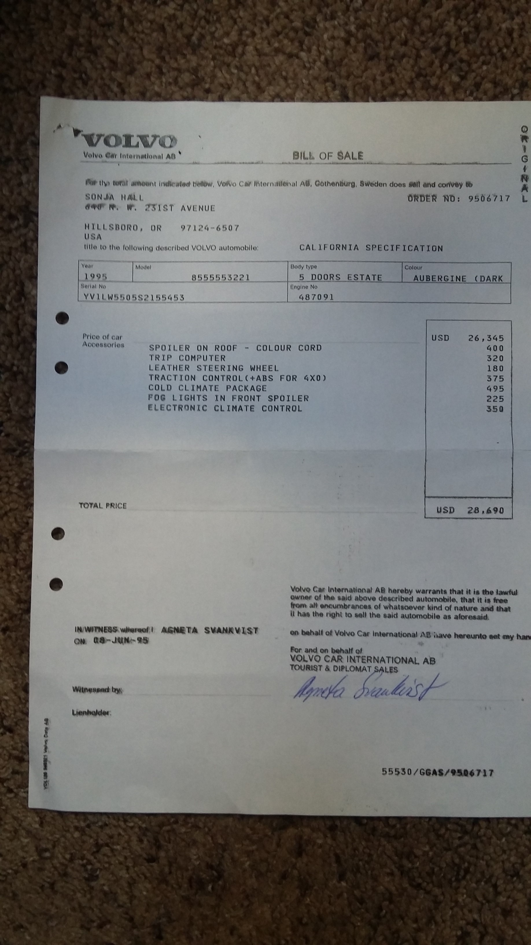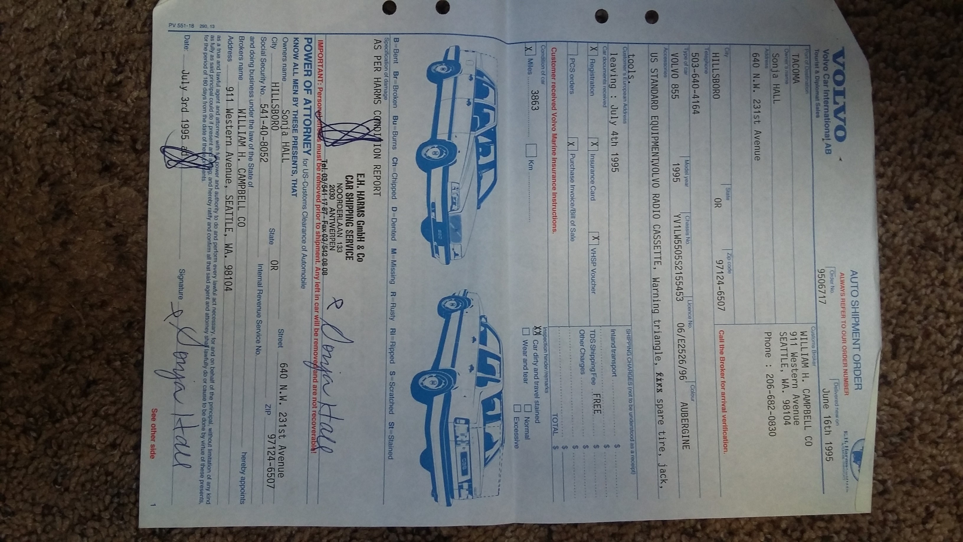 The bill of sale and Dept of treasury import invoice have 1 digit difference in VIN , also told auto check says reconstructed in 2009, and base model, but nothing happened then? Told by Volvo dealership that VIN says came as 4 speed automatic, but was ordered from factory with stick.