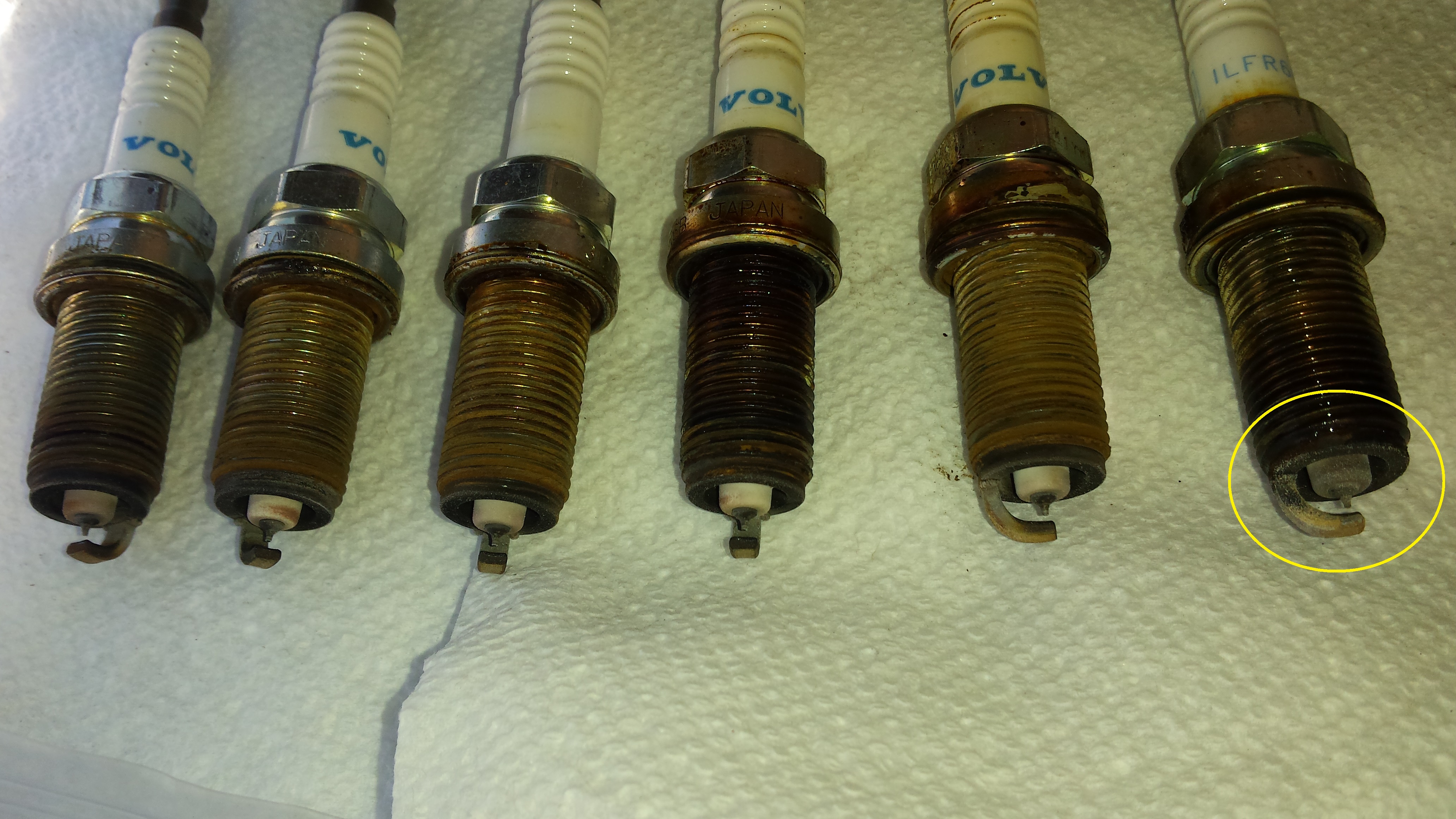 2. Are the Sparkplugs ok? I replaced these a year ago. The 6th plug from the left has lots of carbon