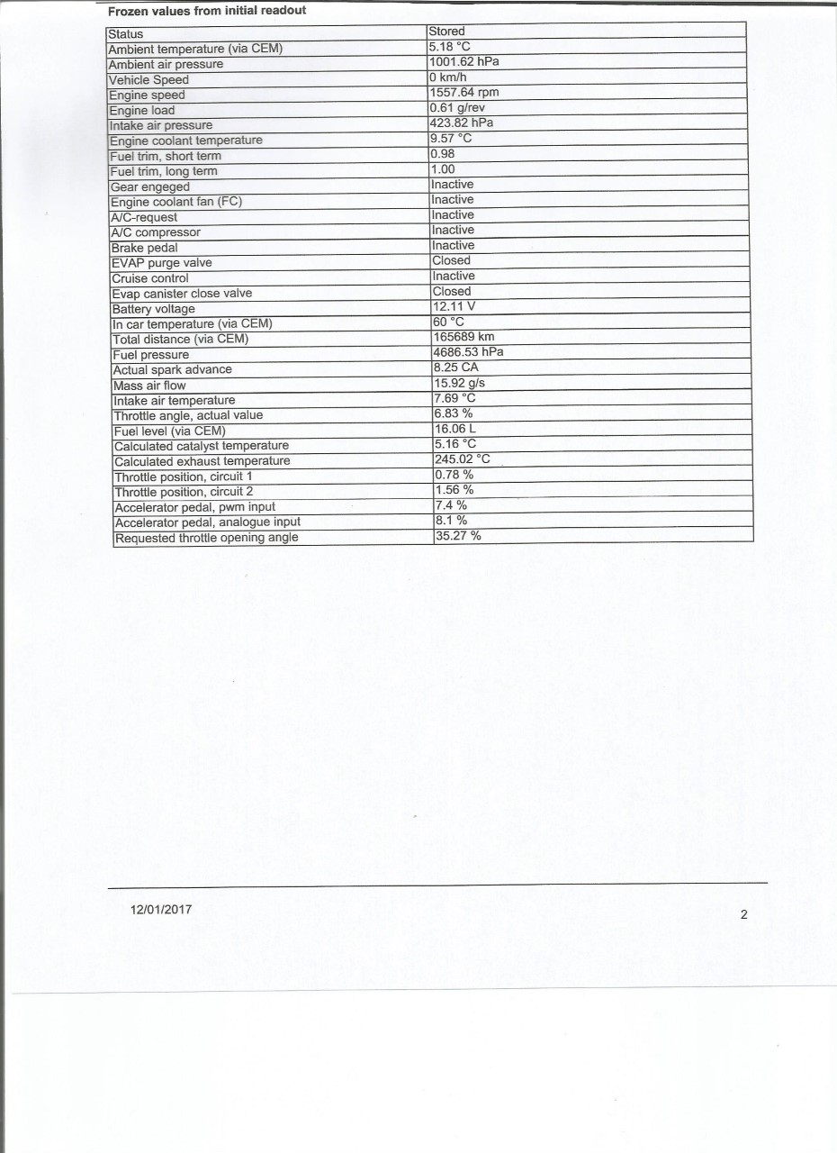 Following is the detailed information from VIDA - from this it looks like the throttle valve is not opening. If so I am thinking ECM or cabling/connections to the throttle body. Is my analysis correct? Suggestions on diagnosing/next step ?