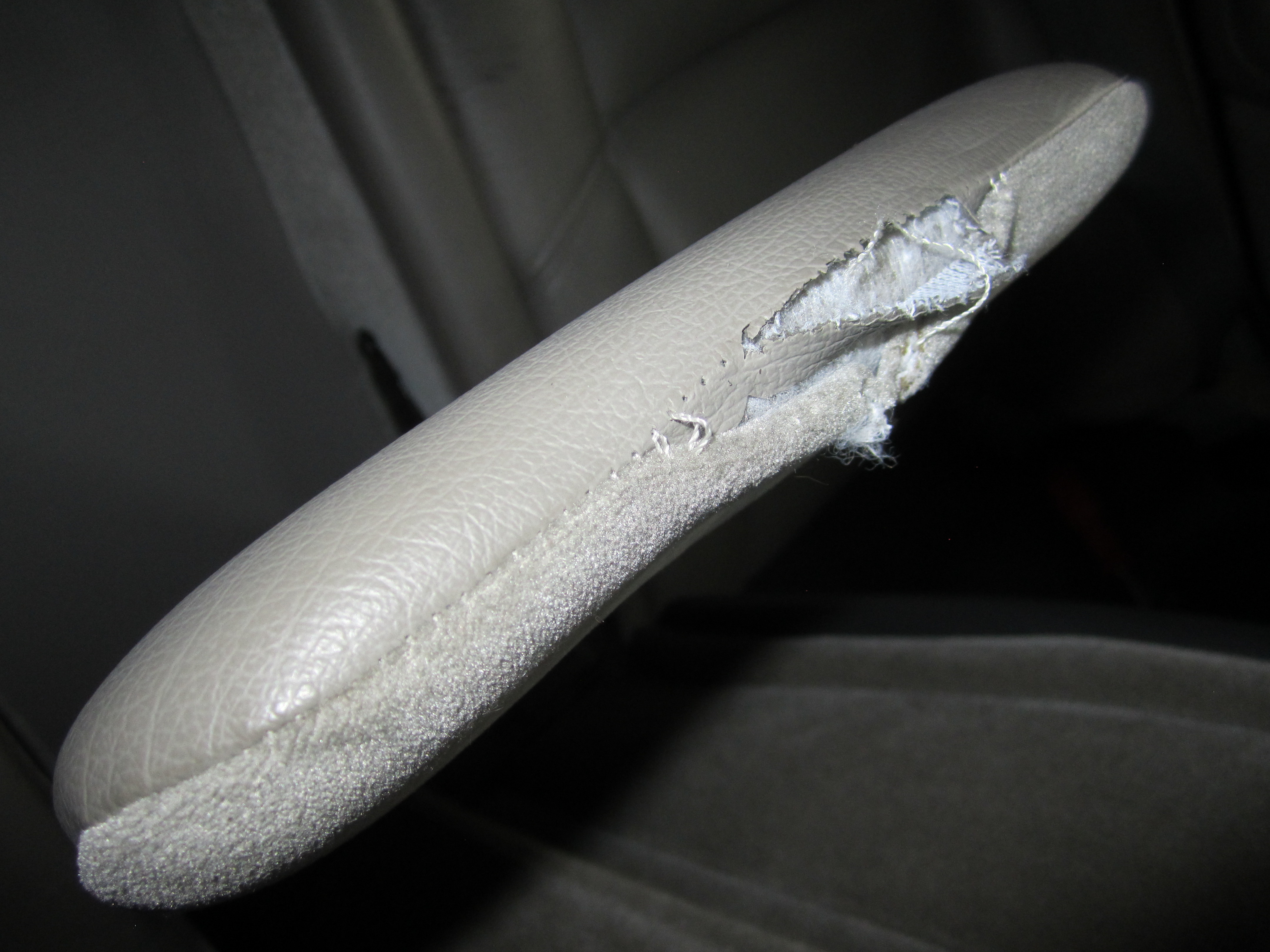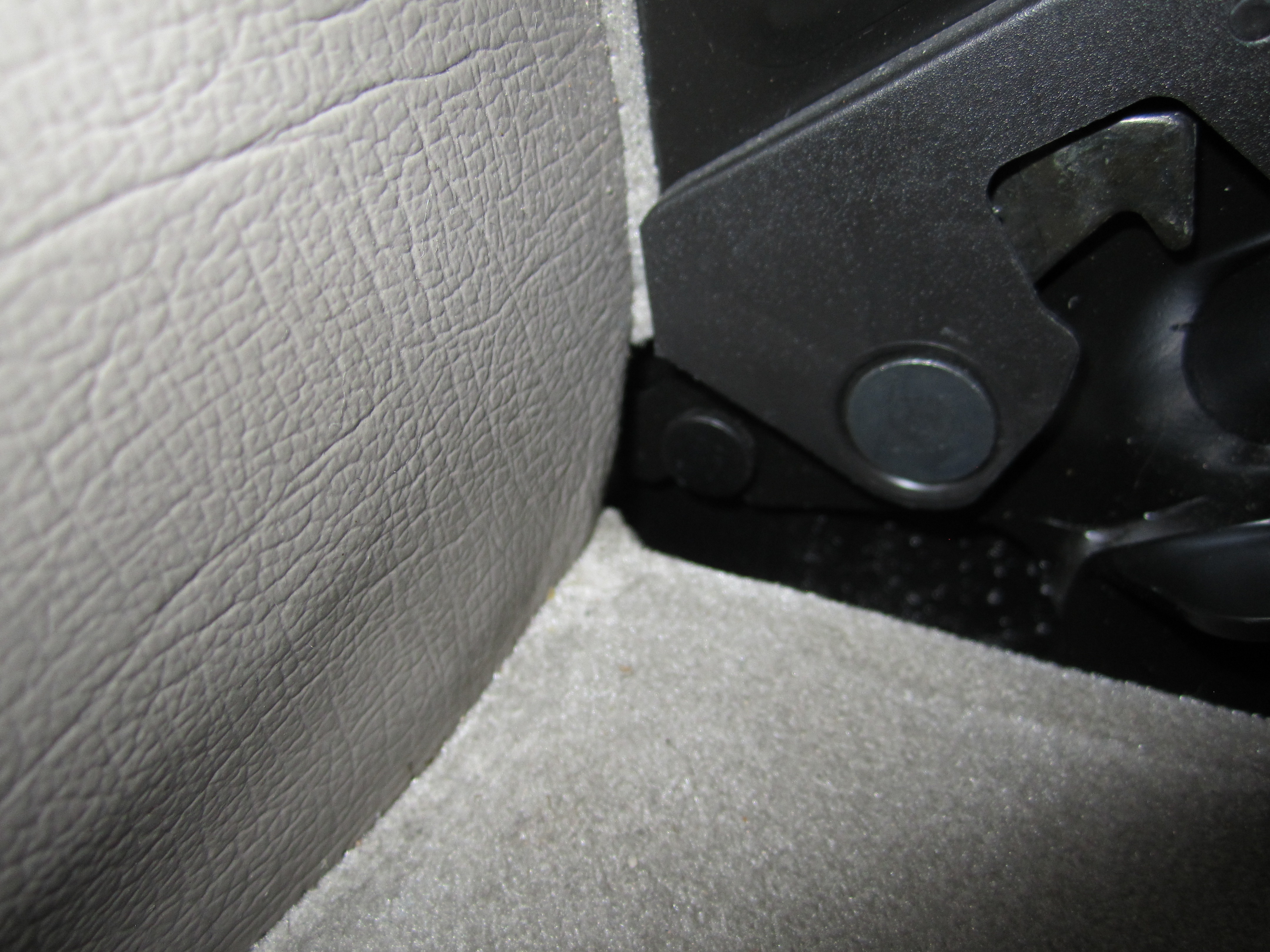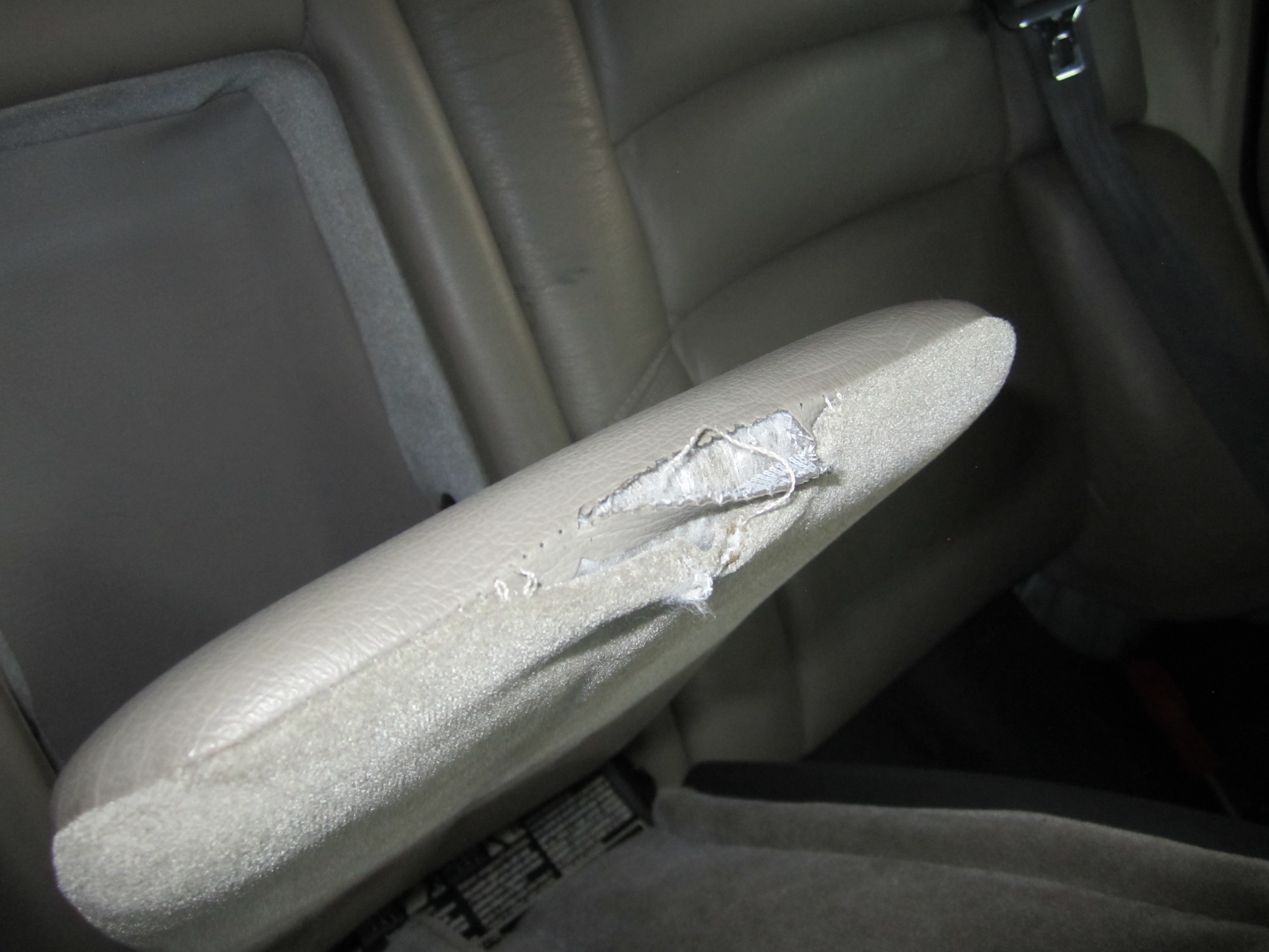 Here are a couple of pictures of the damage to the pull strap for the child seat in the center of the rear seat: