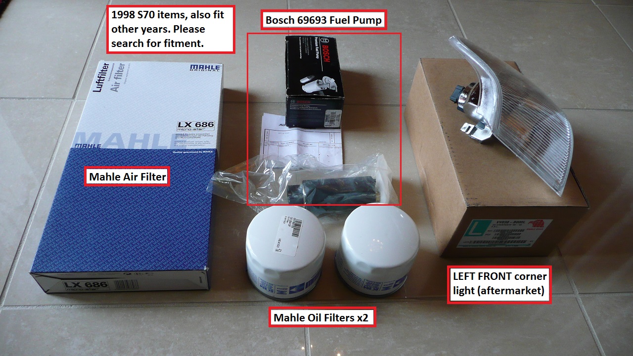 1998 S70, V70, 850: Fuel Pump, AF, Oil Filters, corner lights...$120