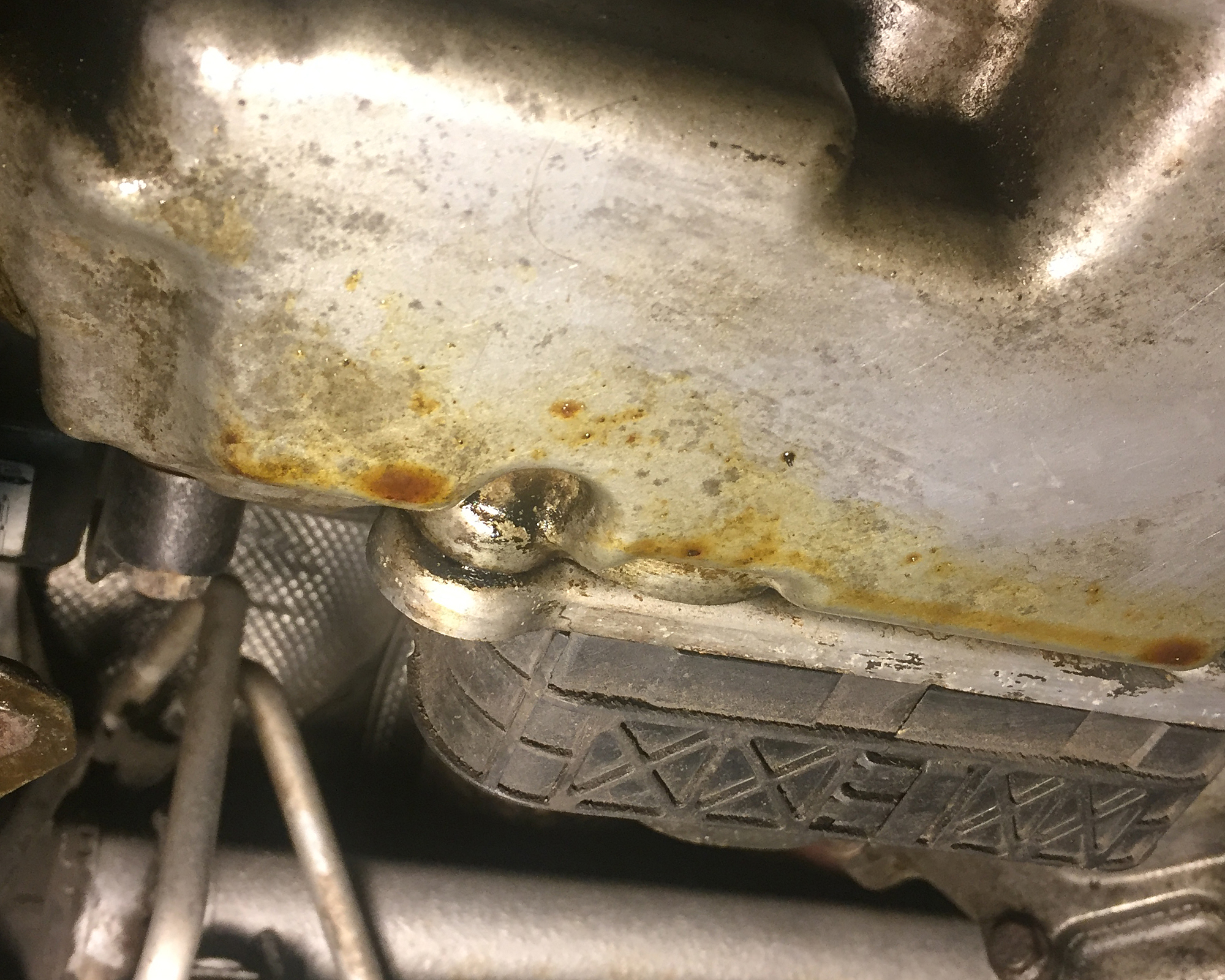 Just after my first oil change on this S60, I was fooled by a minor spill at the oil filler that had slowly made its way down to the pan.
