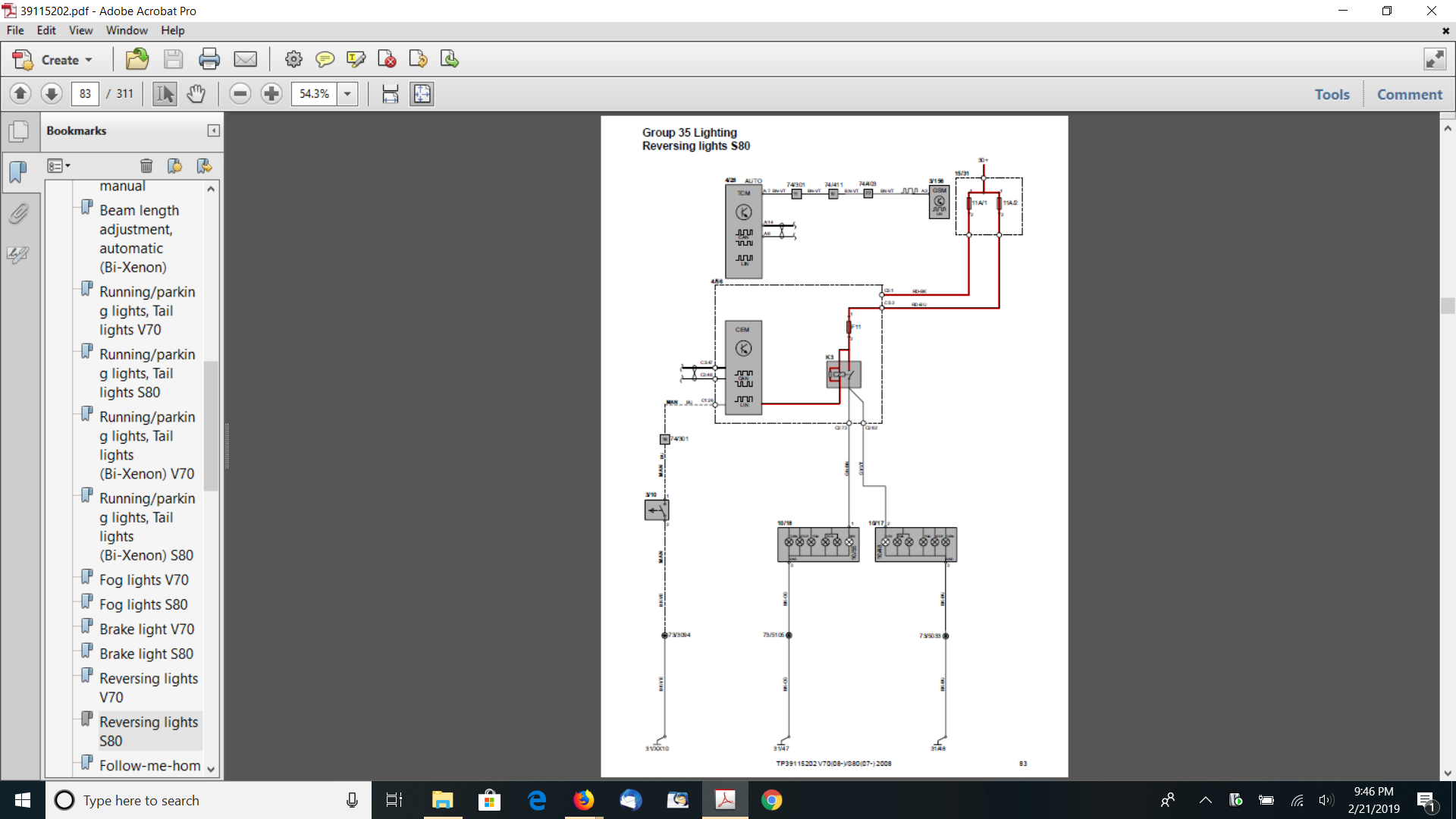 2008 S80 AWD Automatic 3.2 T6-No revers lights
