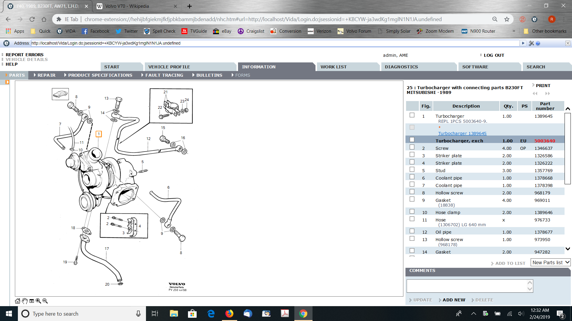 Looks like there where 5 different turbochargers for the 1989 740 with a B230FT. Two Garret and three Mitsubishi. Which one do you have?