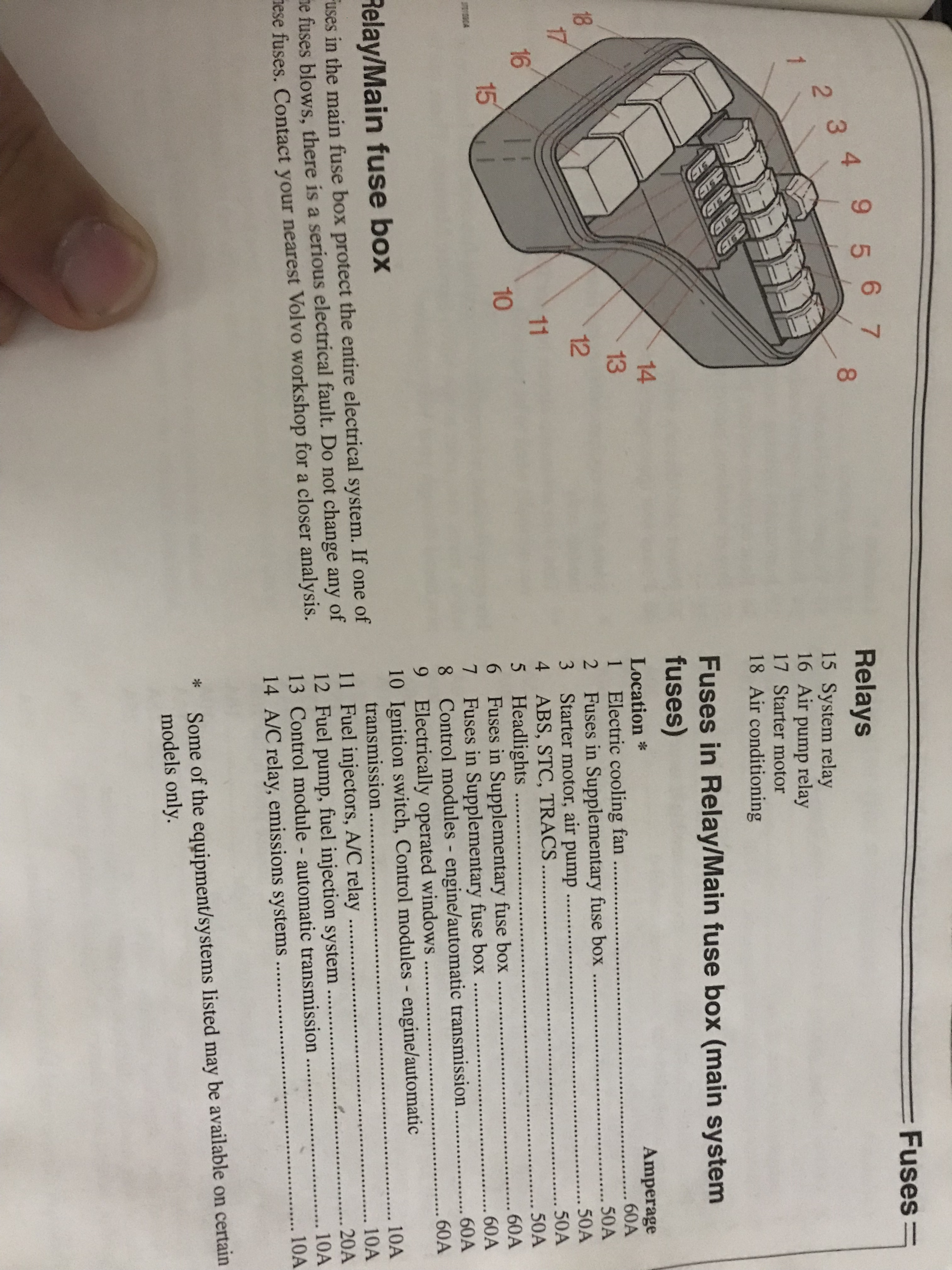 So I picked up a 2000 v70xc AWD from a guy going to scrap it. $600 later I was driving it home. Feels like it’s in limp mode. No power and can’t feel turbo spooling up. No blower on AC but compressor kicks on and it get cold. Open the sunroof and it will pull air through and it’s cool. CHeck engine light is on. I traced it down to a fuse in the engine bay. Fuses isAppears that the AC and emissions are on the same fuse. In the attached pic the fuse is number 14. Pulled the blower motor and runs off 12v in the garage. Unplugged the motor and resistor after metering the resistor and all appears fine. With those unplugged fuse still pops. So this leads me to believe something in the emissions is shorted or blown. Anyone have a diagram of the emissions components and their locations. I imagine a secondary air pump or EGR and evap system may be the culprits. I will keep inspecting and unplugging the testing the fuse to see when I get a good fuse to stay.
