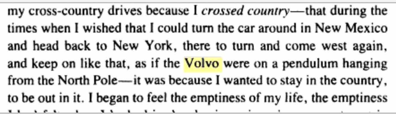 ... not like Volvos in media are exactly rare, but this is a great book, and well, I can't help it I suppose.