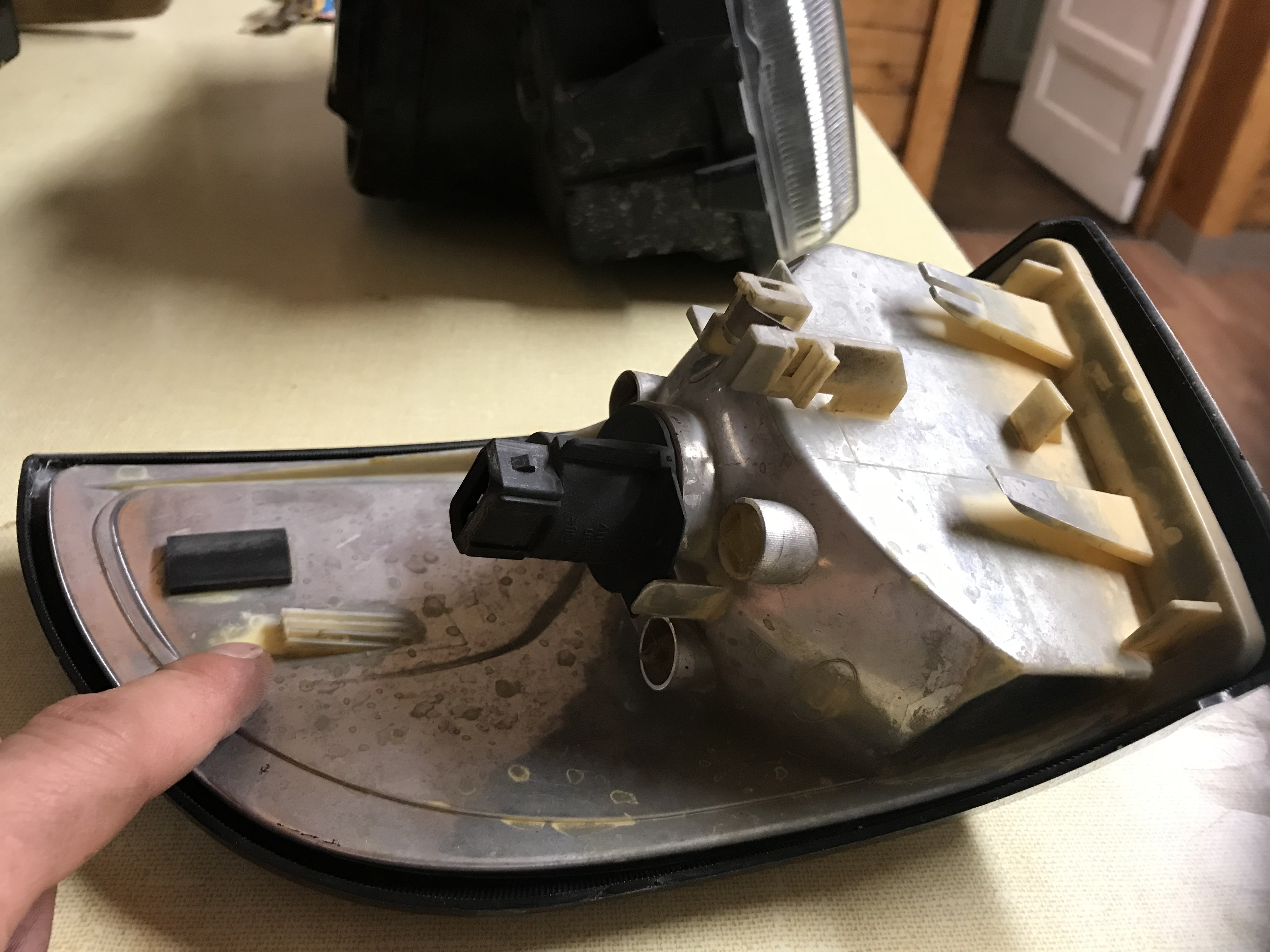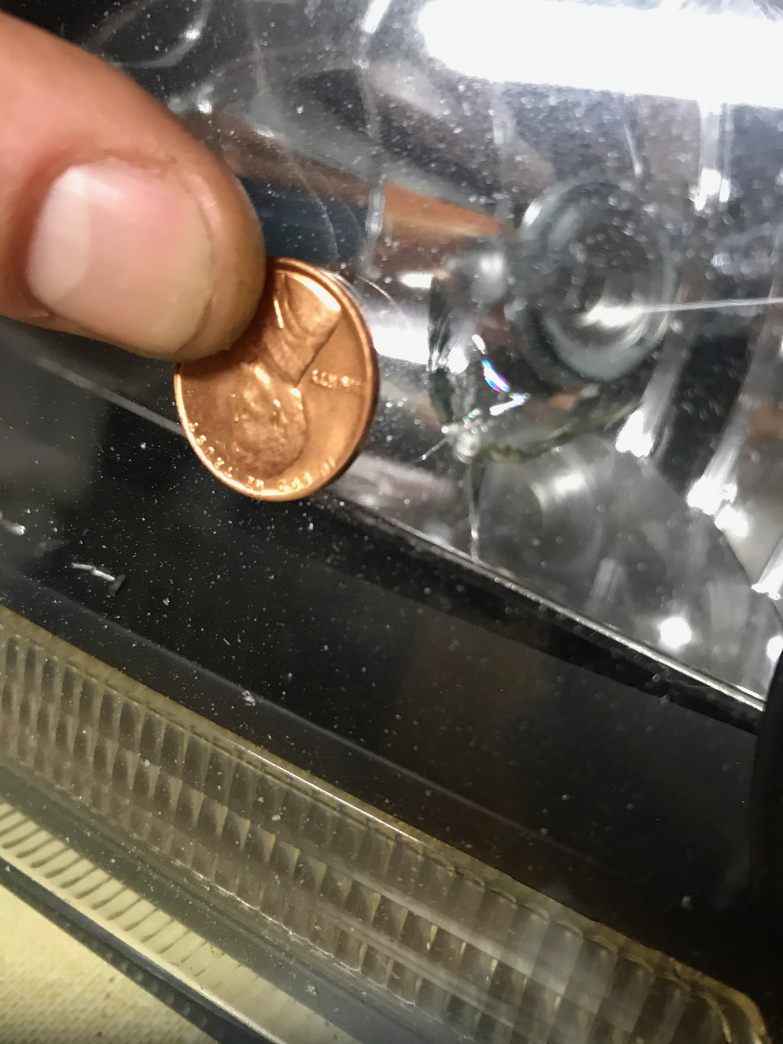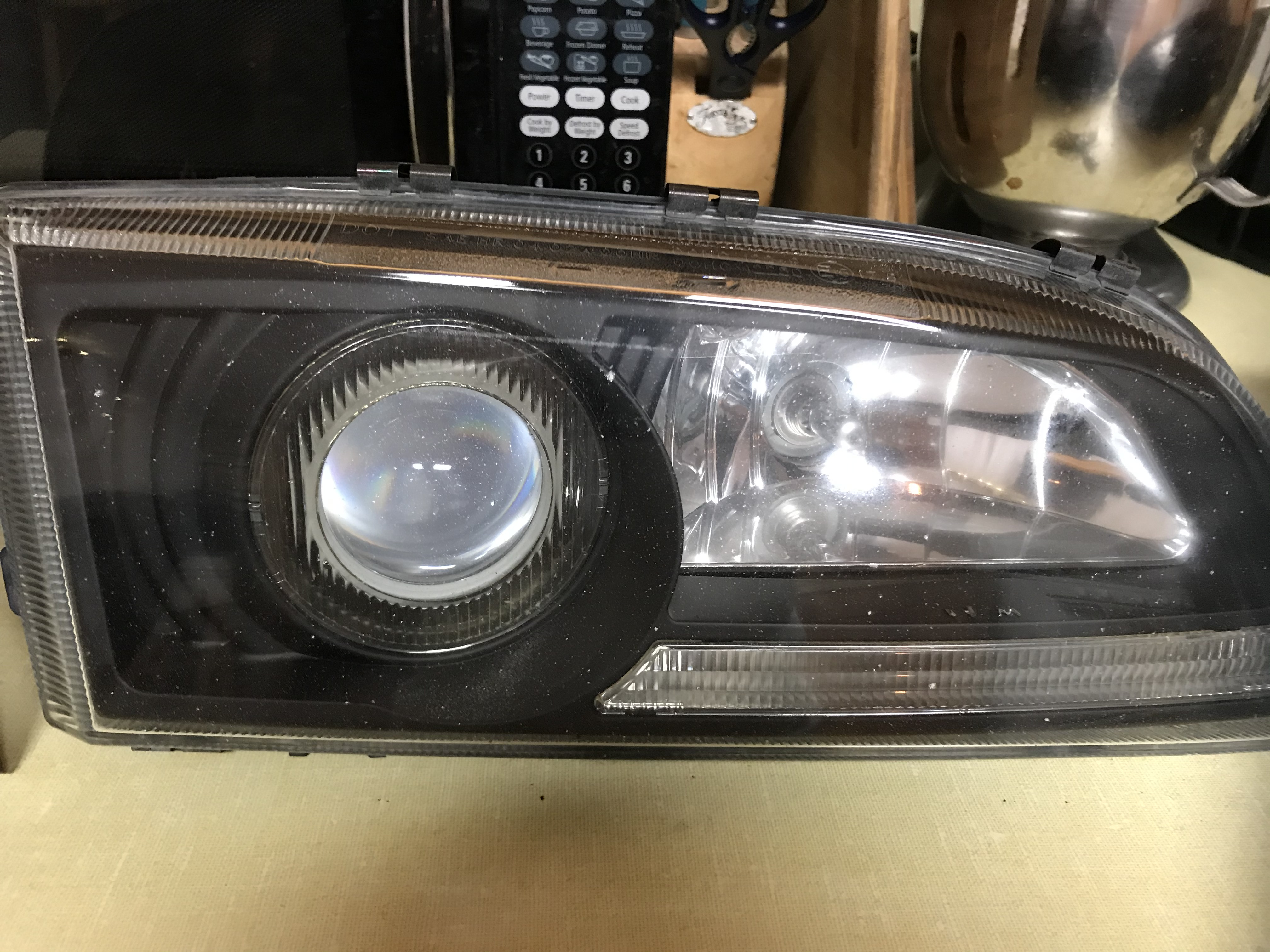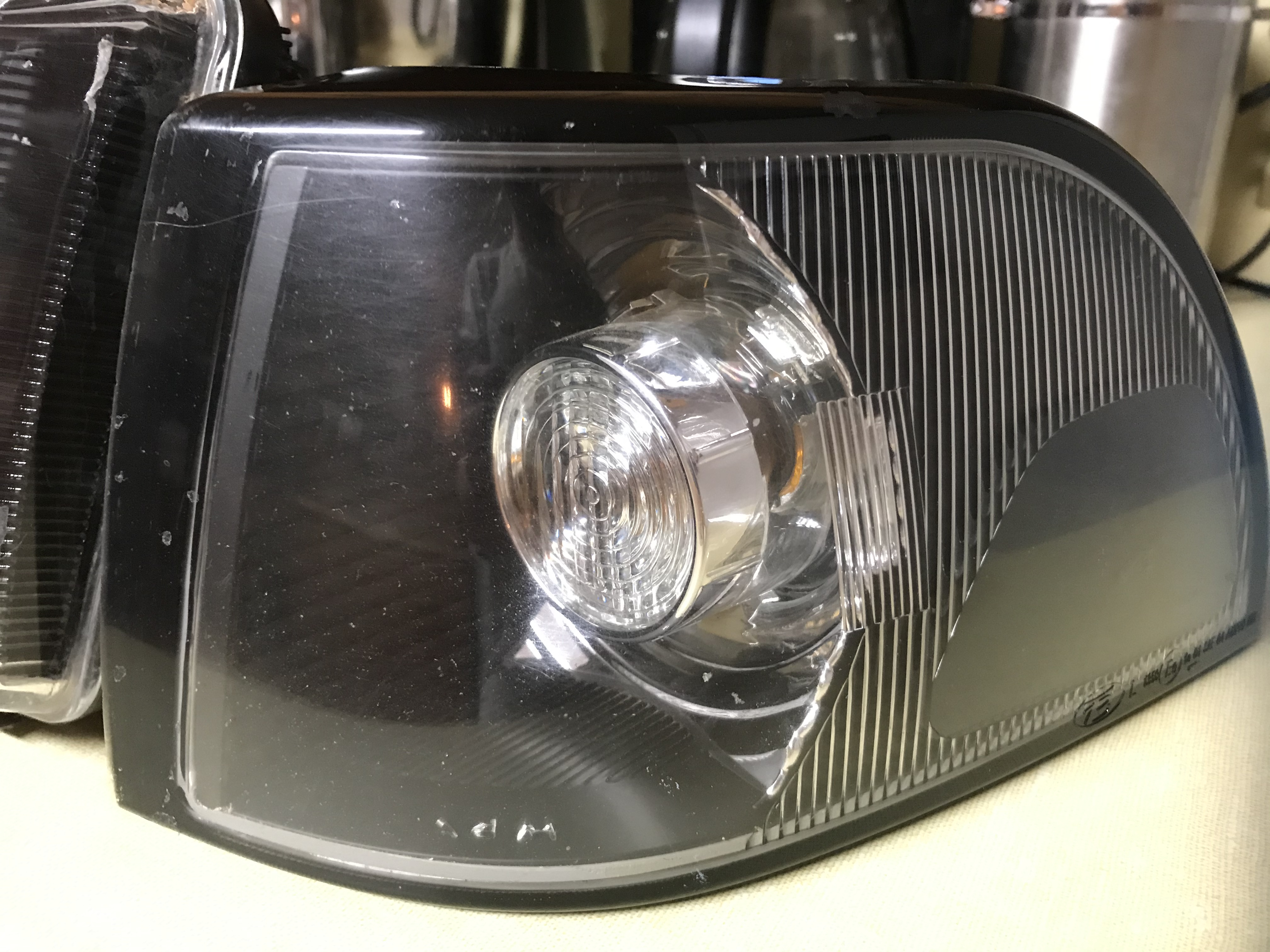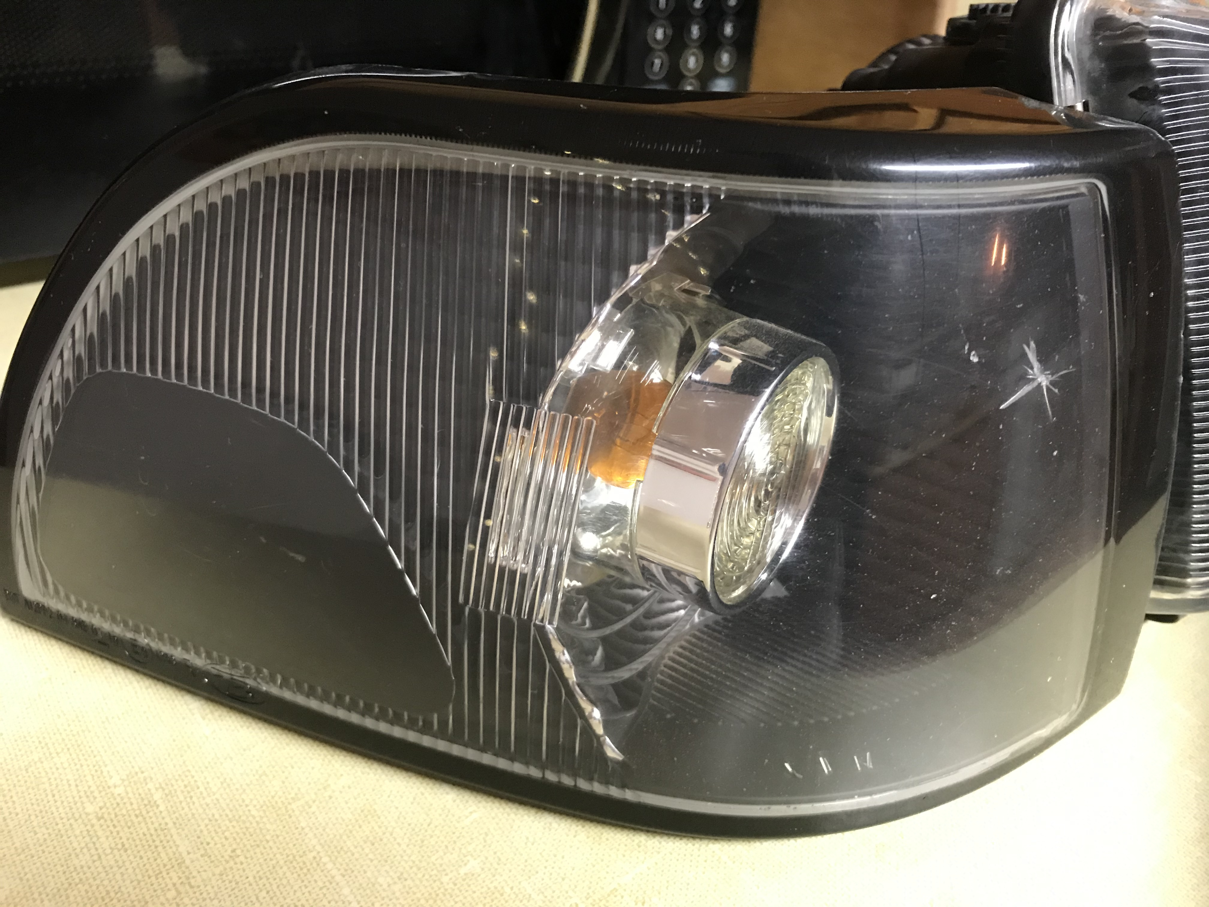 Headlights and corners for x70 models. Not in the best shape, not in the worst shape. Driver side headlight has rock chip and passenger corner does too. Some bitting but not blasted. 3/4 tabs present on passenger corner. 1/4 tabs present on driver corner. I used 3M double-sided tape to hold it in place. All bulbs included except for lower headlight bar.