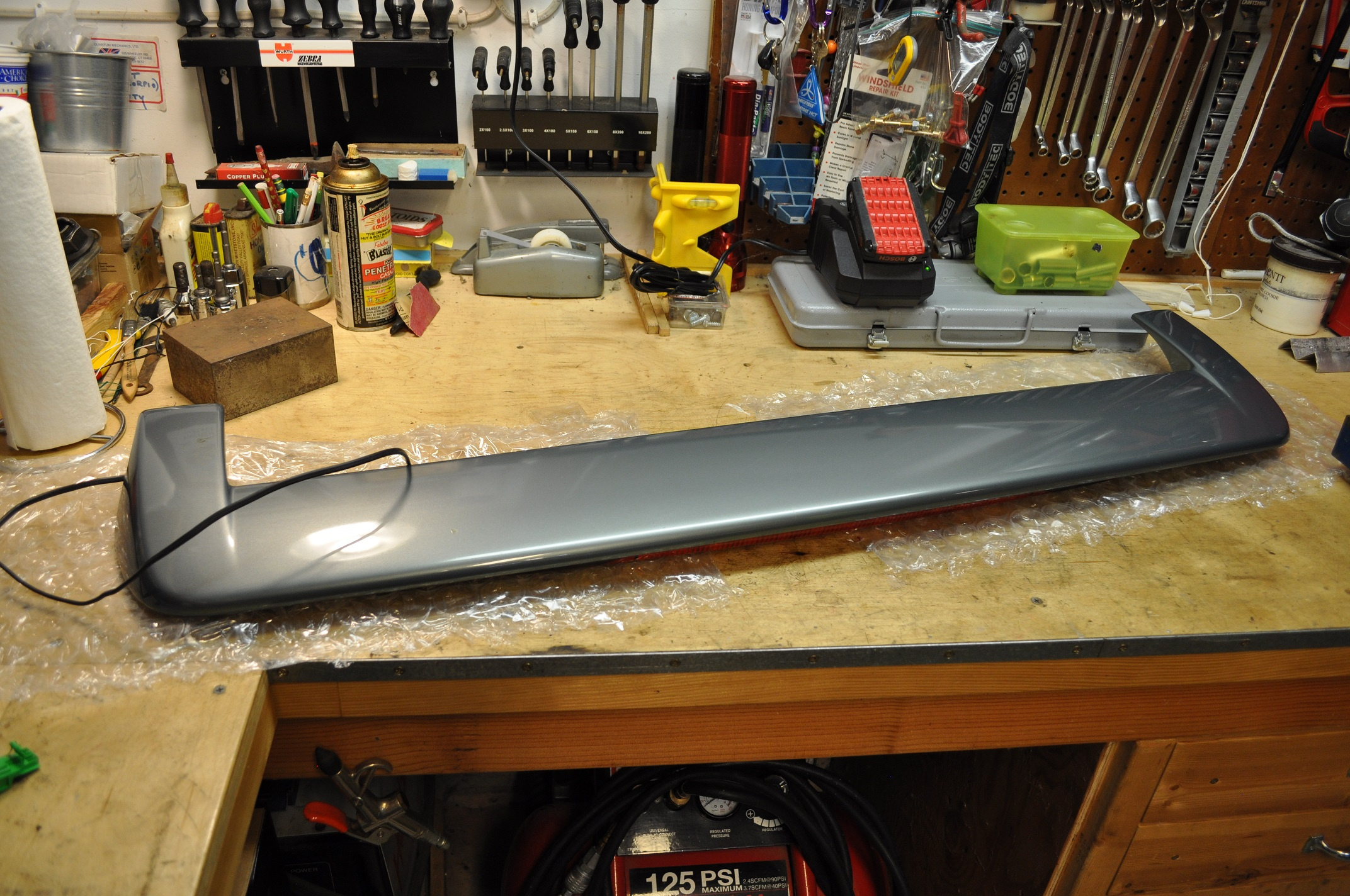 Now its time to prep the spoiler for installation. The connector needs to be undone, and the pins need to be pulled out. It should look like this: