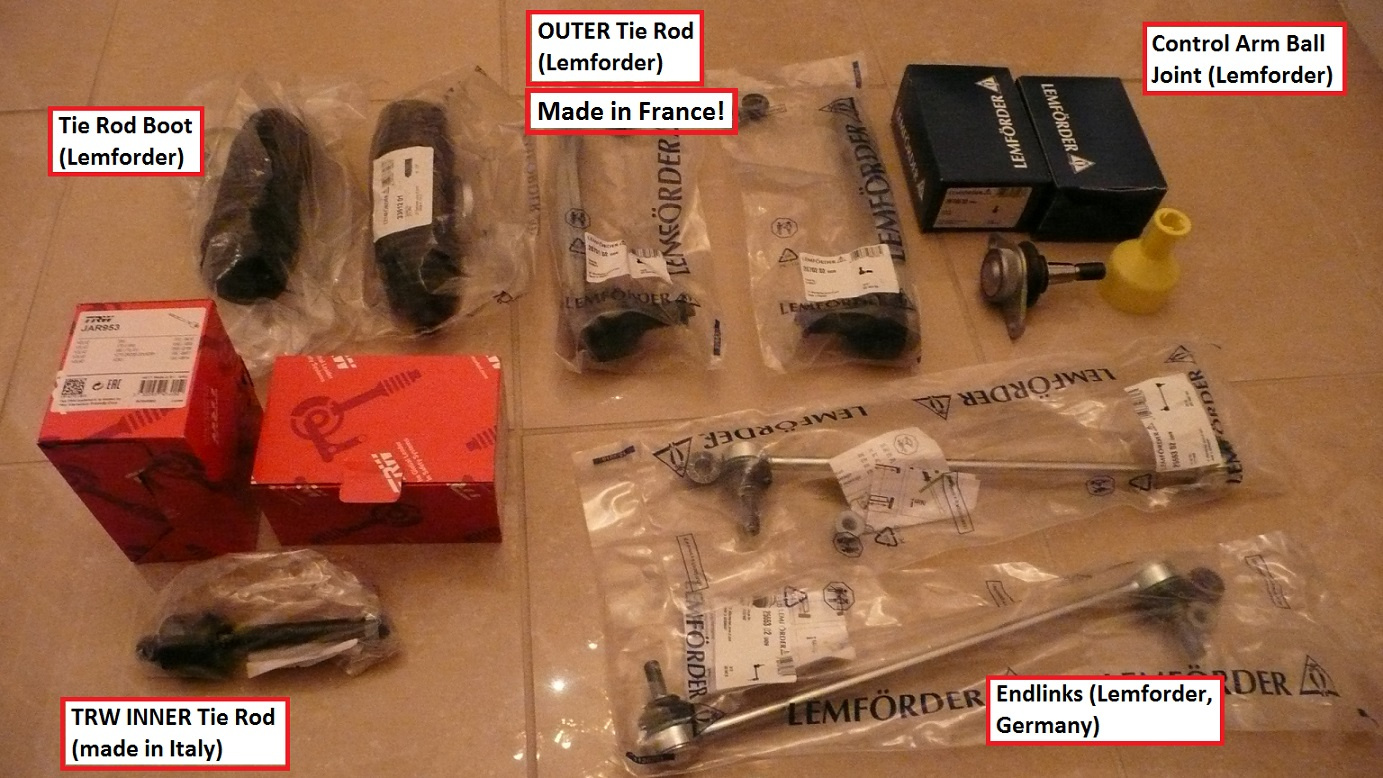 - Swaybar endlinks, C.A. ball joints, tie rods (Inner and Outer) are loose but no play yet. I think these have another 10K-20K of life remaining. I have done many suspension works on different cars, and do NOT want to do this work twice, so “while there” I replaced all of these using quality parts.