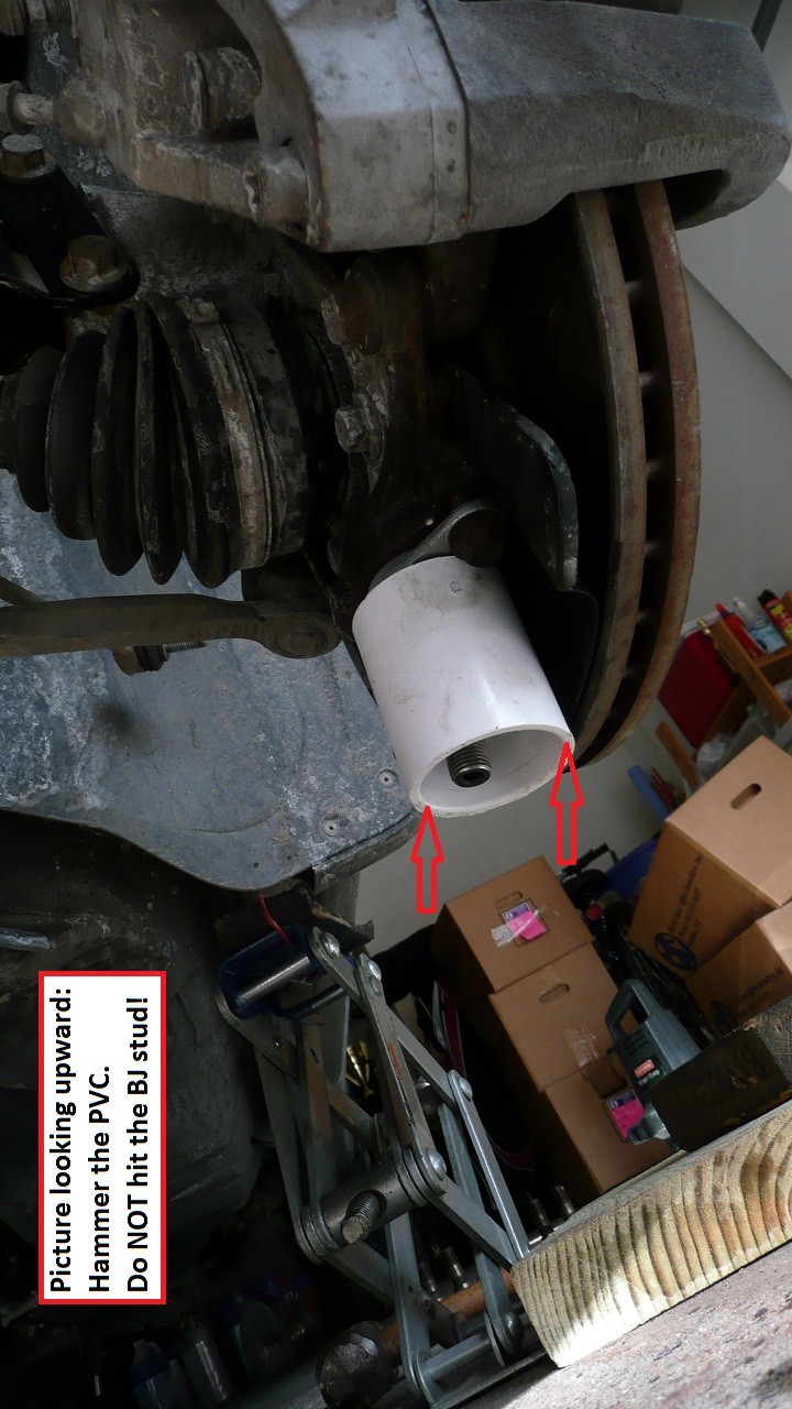 - The ball joint: put it in the freezer for 1h. I used 1-1/2-inch PVC coupler ($2 at hardware store) to pound the BJ in. In the plumbing world, 1-1/2” PVC pipe means the I.D. = 1-1/2”, so this 1-1/2-inch coupler joins 2 PVC pipes together. So the PVC coupler I.D. is more than 1-1/2” but it fits the BJ boot perfectly.