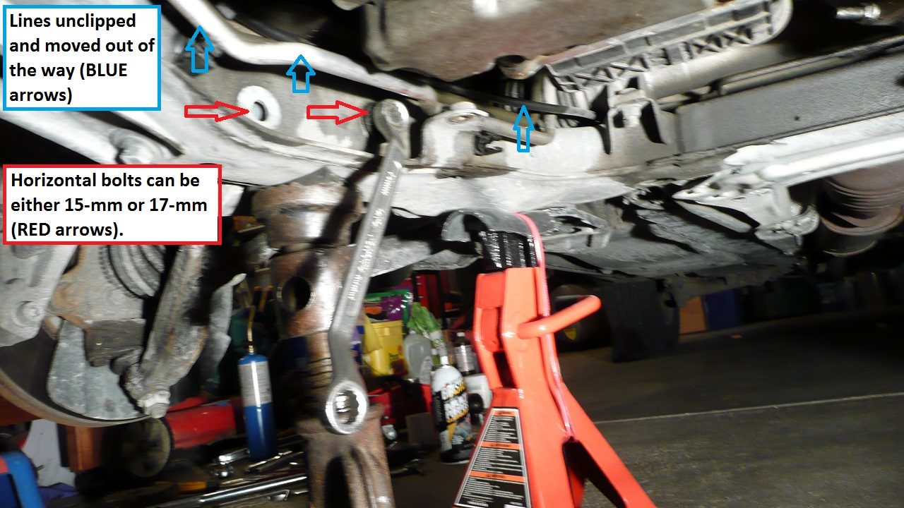 - Loosen all nuts and bolts but do NOT remove any of them. This allows you to tighten/remove other nuts/bolts with breaker bar while the knuckle etc. is still attached. The same is true for installation, hand-tighten the nuts/bolts, and torque them all at the very end.