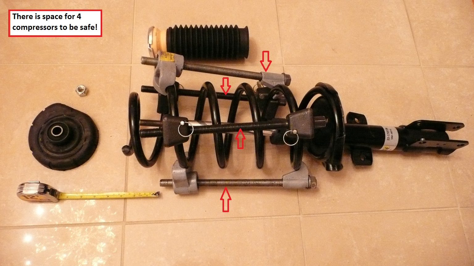 - If you watch youtube videos, people use 2 compressors, which I think it is dangerous bc this is an SUV coil spring, which is stiffer than a car spring (such as a 1998 S70 etc.). Remember SUV is about 4500-5000 lbs, a car is 3500 lbs.