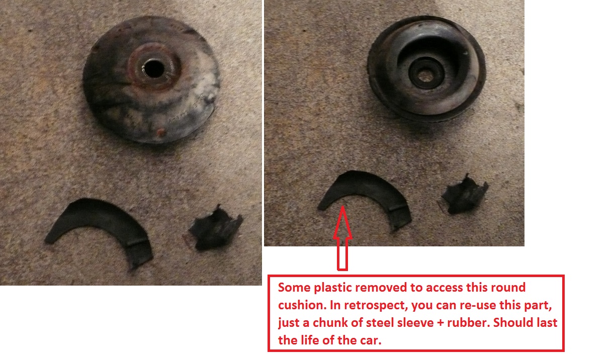 - The donut ring on top: replacing this is difficult bc one has to cut through the plastic cover to remove it. You can re-use this part. It lasts the life of the car.