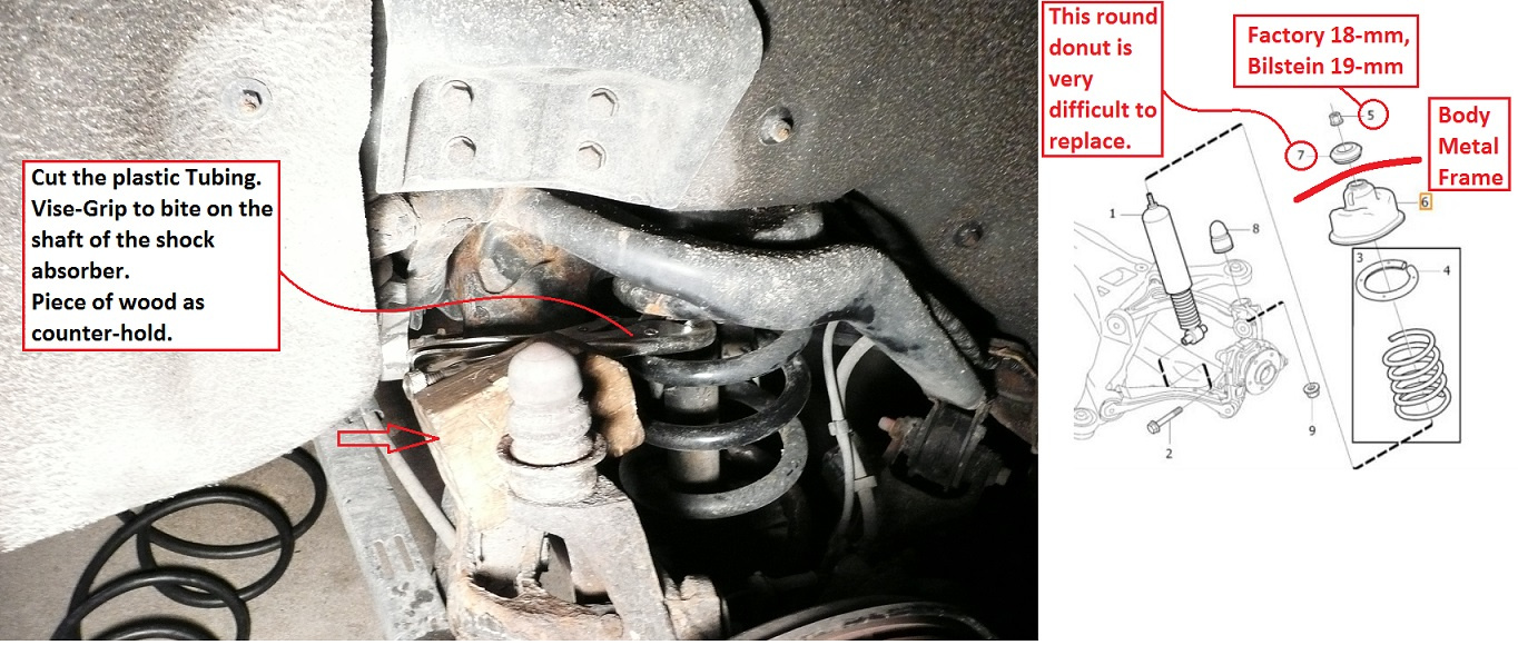 - Factory top nut is 18-mm, Bilstein is 19-mm.The Bilstein came with a washer, which sits directly underneath the nut.