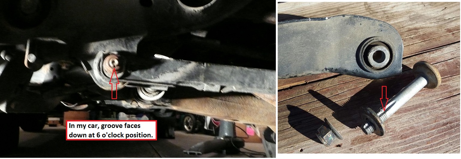 - In order to remove OUTER nut/bolt on the C.A., the stay arm must be removed. Note the eccentric washer on the stay arm, the groove on the bolt faces down at 6 o’clock from factory.