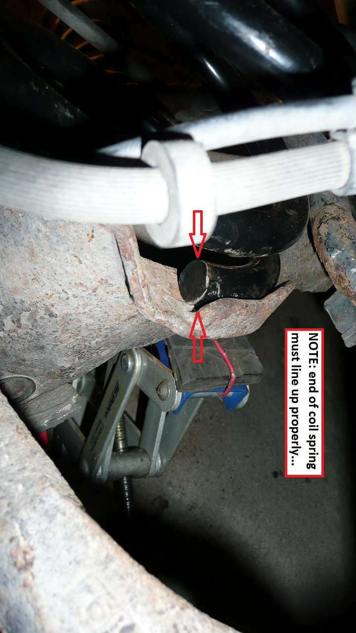 - NOTE the end of the coil spring must be lined up properly with the Control Arm from factory.