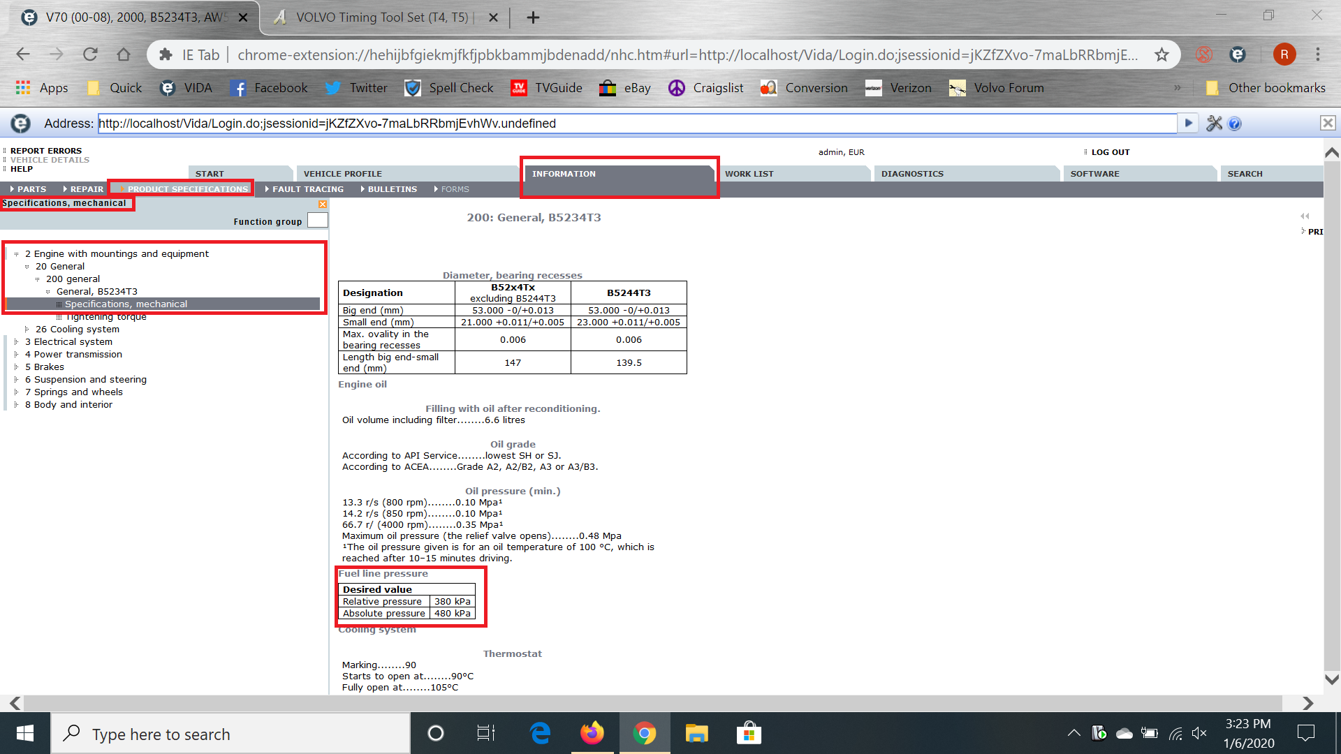 I havent been able to find fuel pressure in VIDA - only fuel tank pressure.