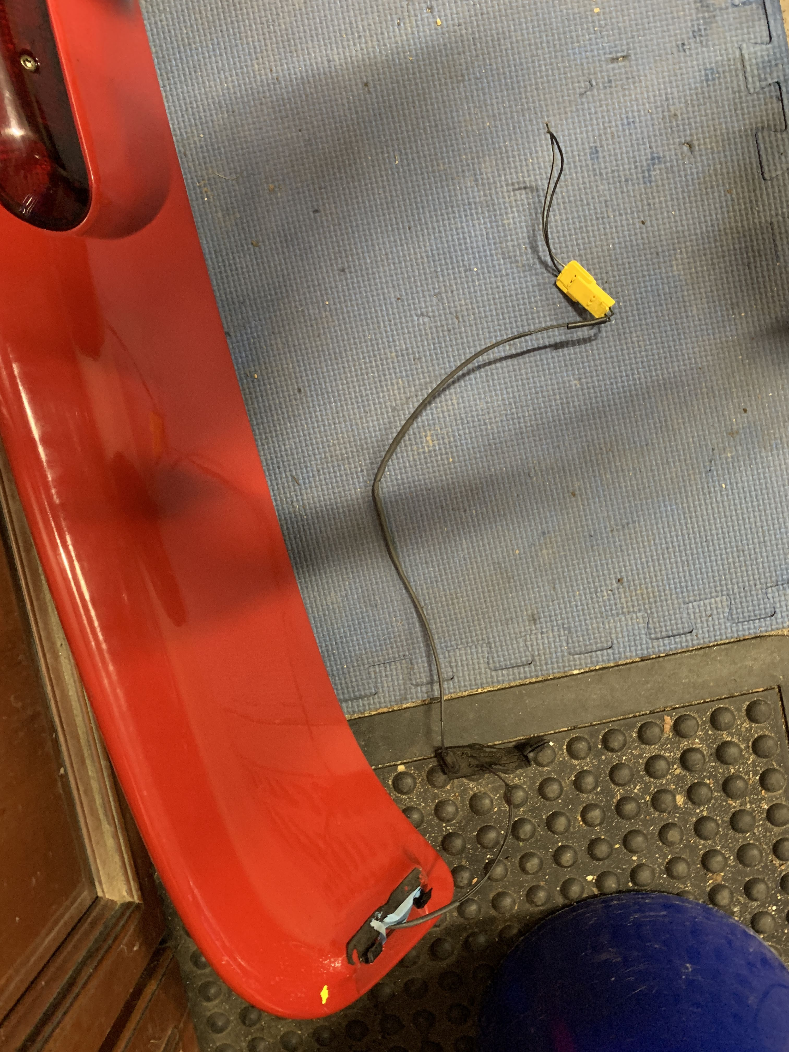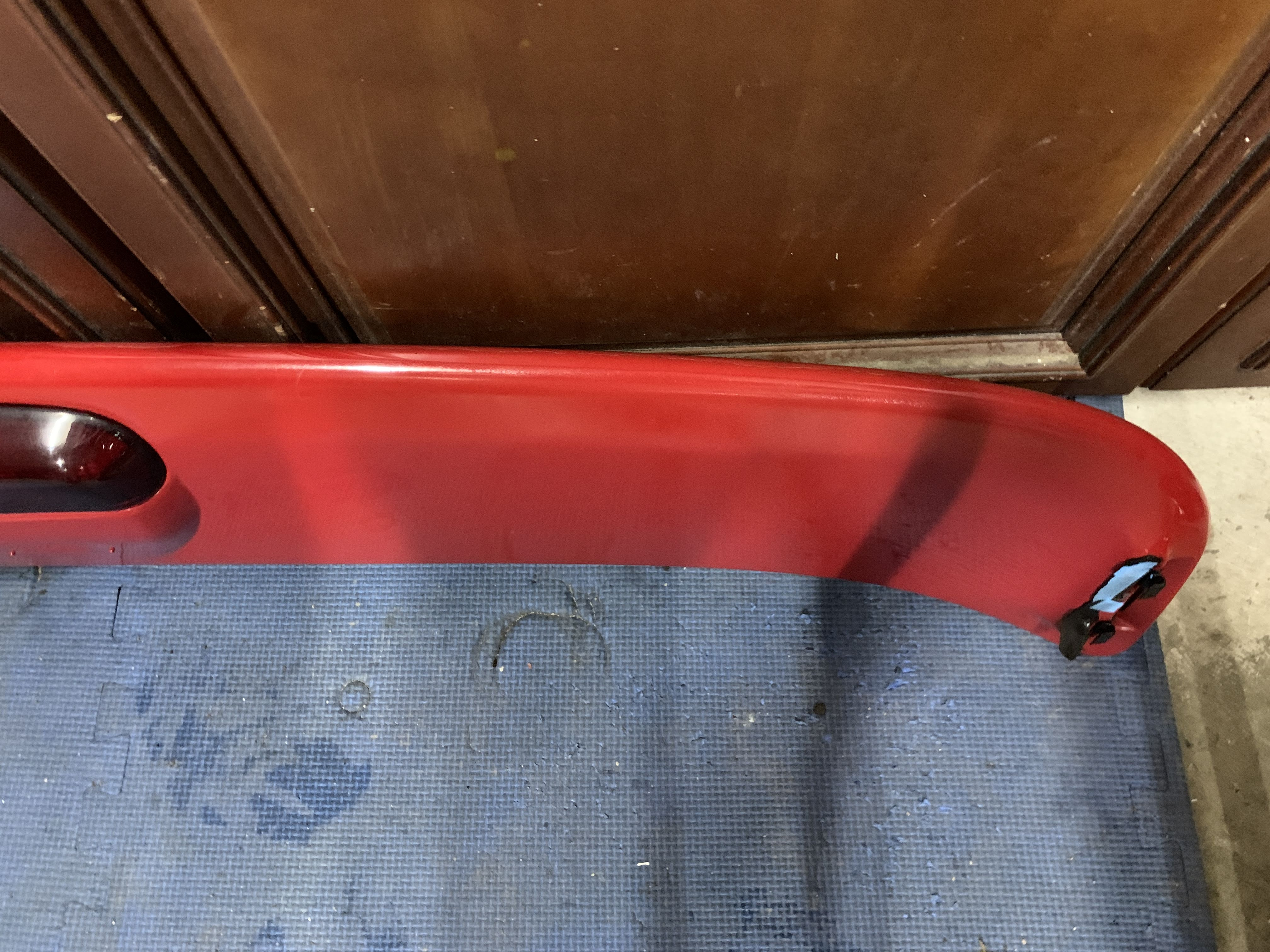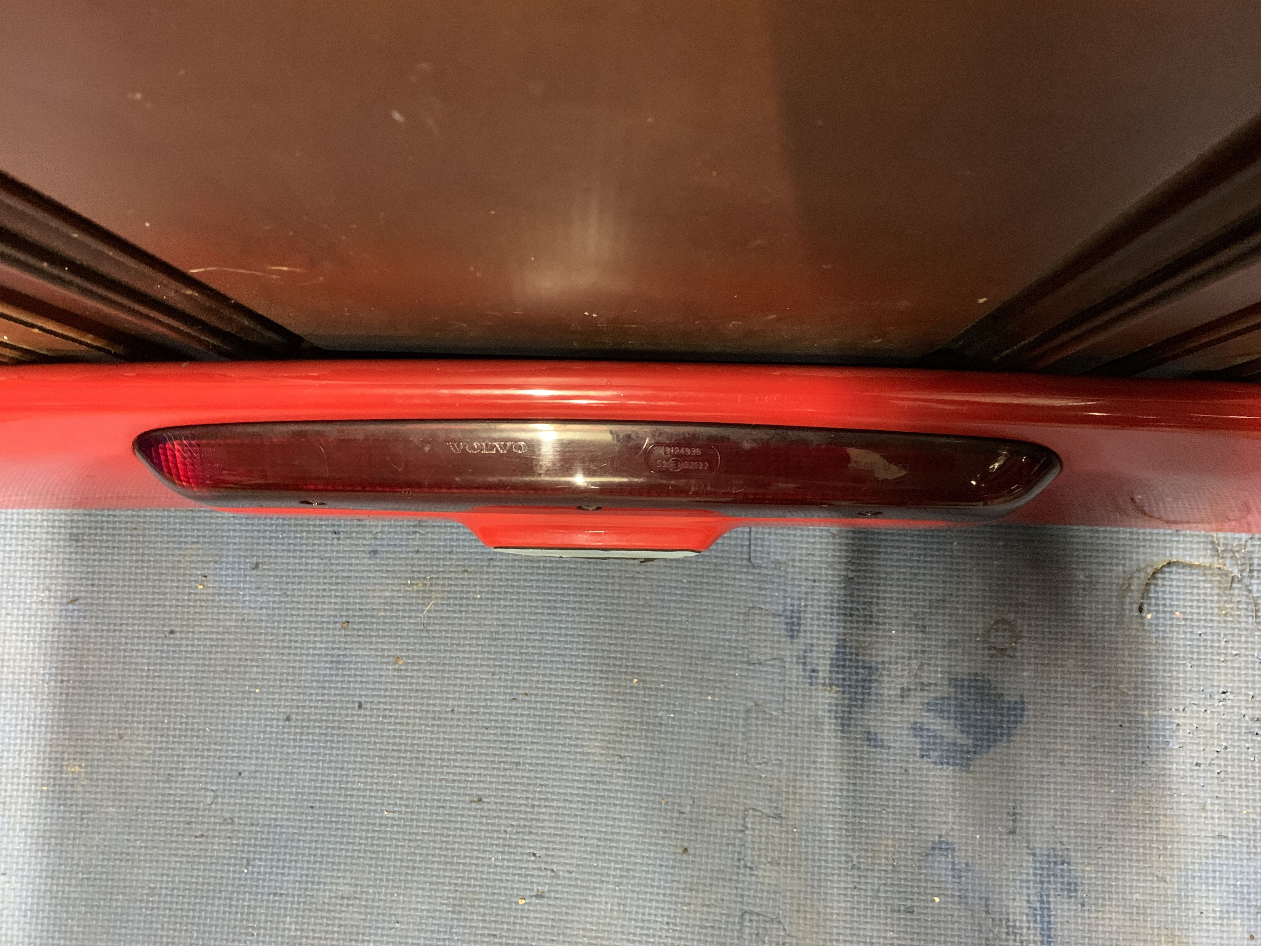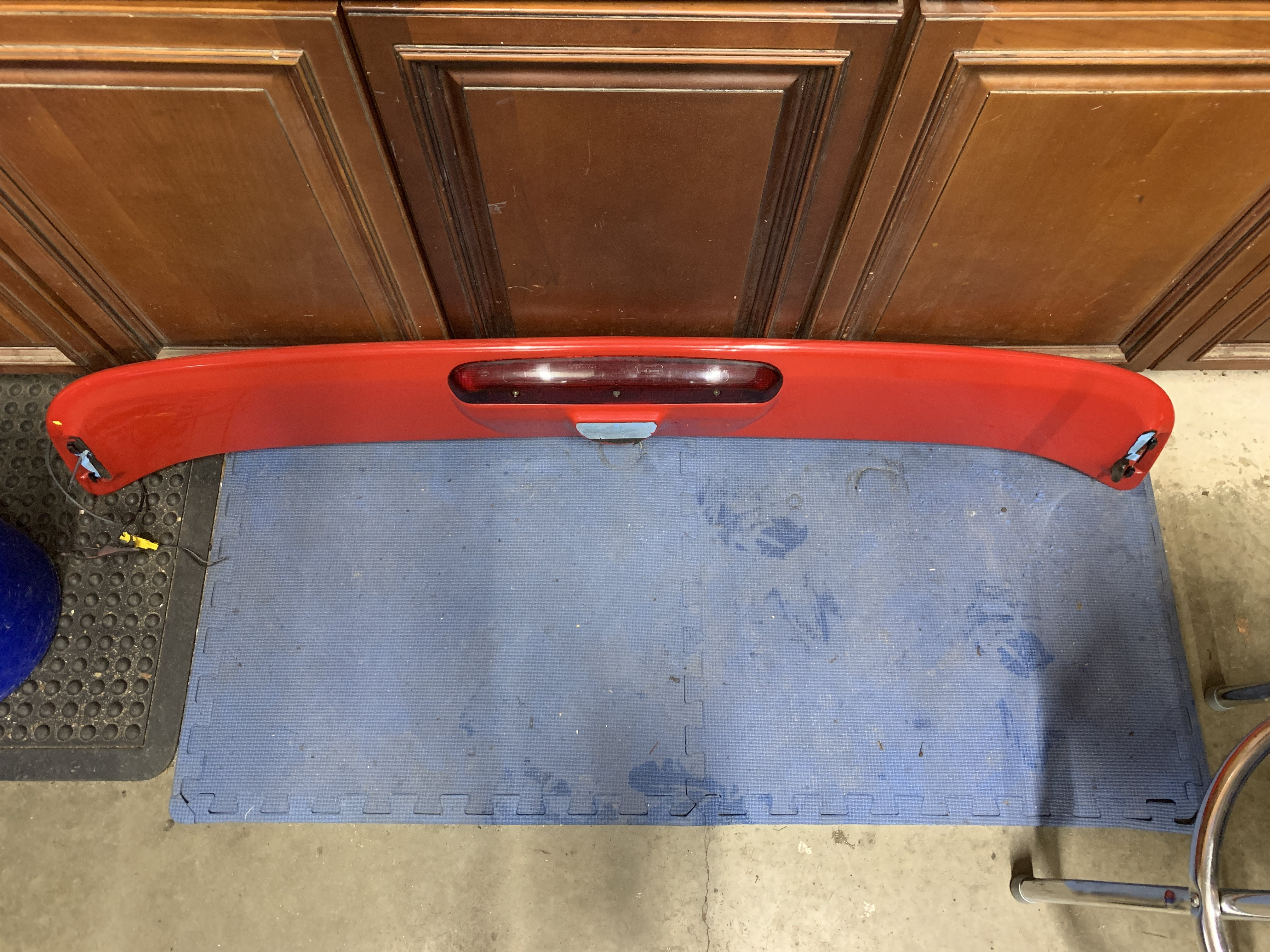 601 classic red rear wing spoiler w/ brake light for 850 sedan, 1994-1997. Good condition, includes wiring with complete connector as well as the brackets.